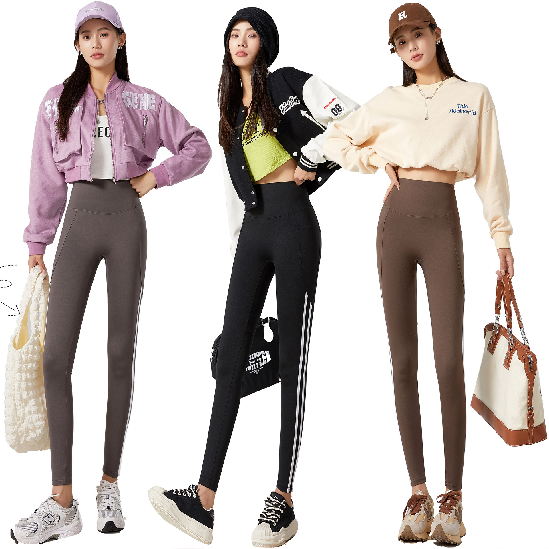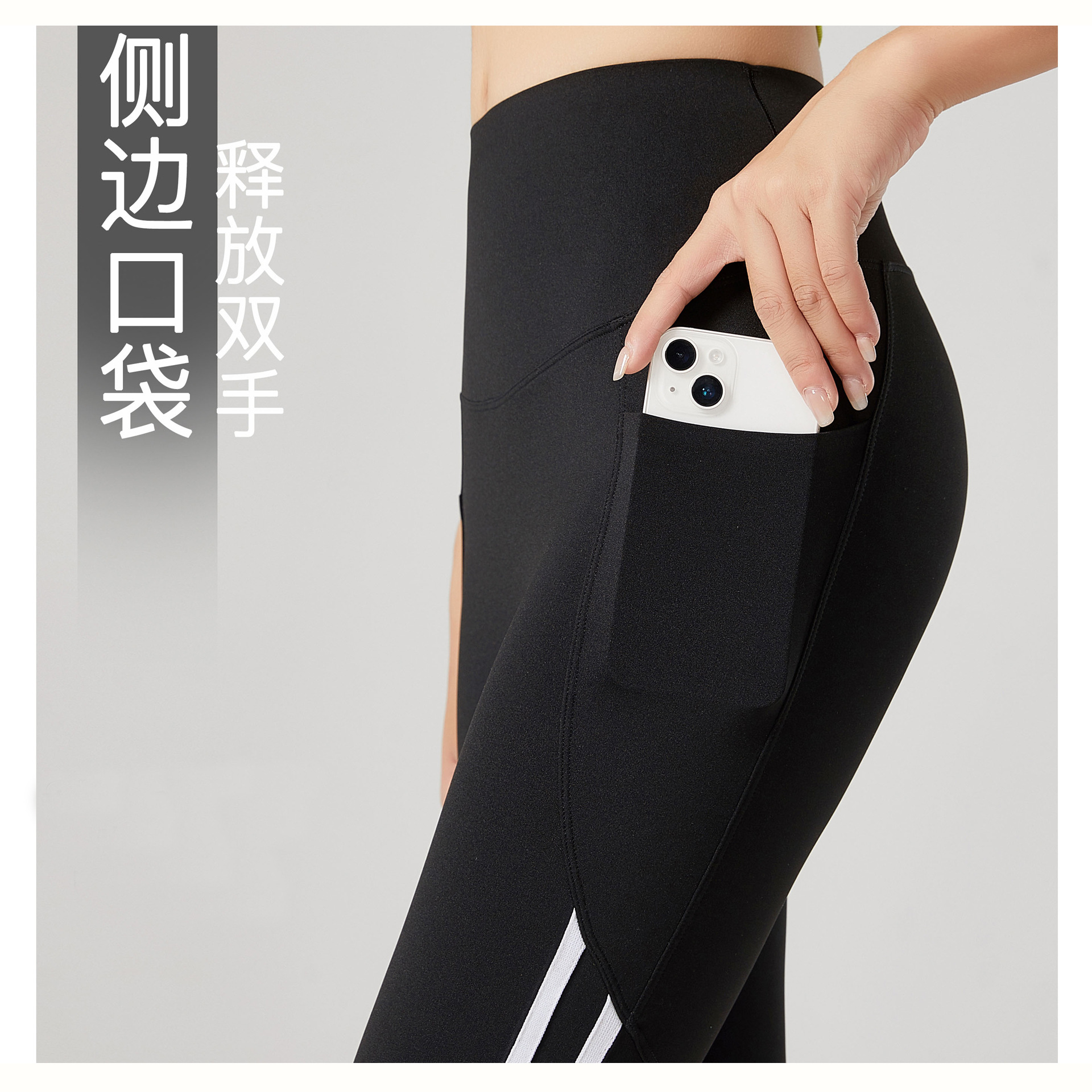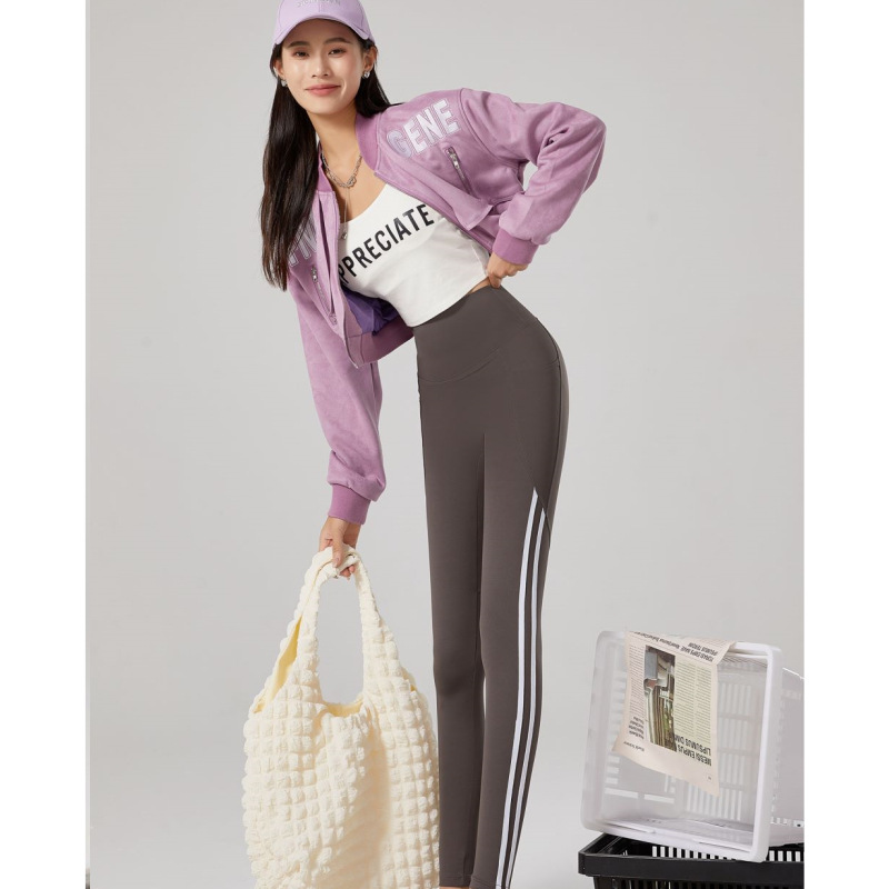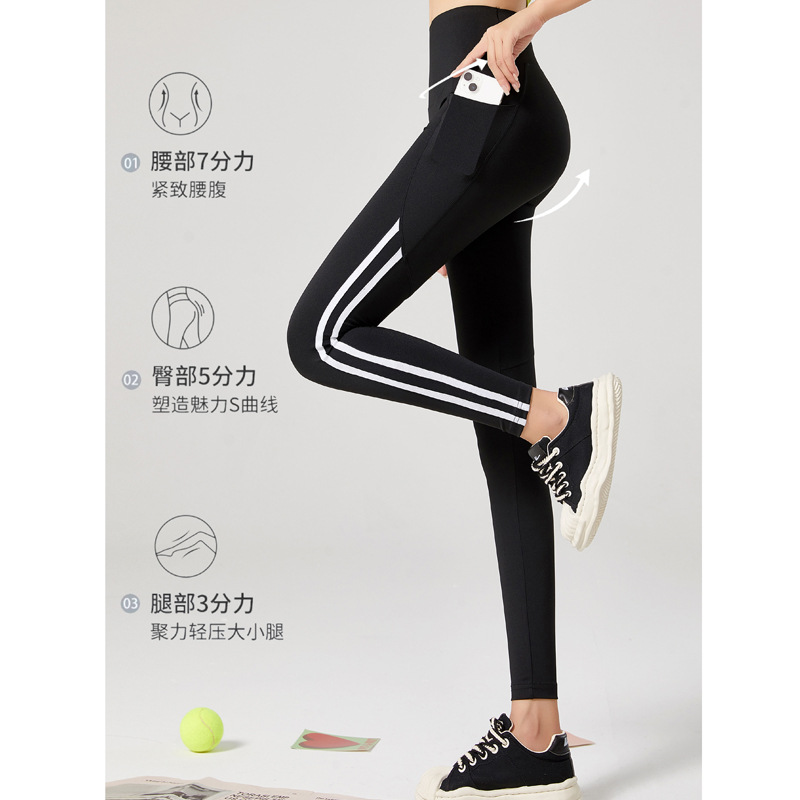 鲨鱼裤女士秋季外穿侧条纹高腰弹力瑜伽芭比裤收腹提臀口袋打底裤
