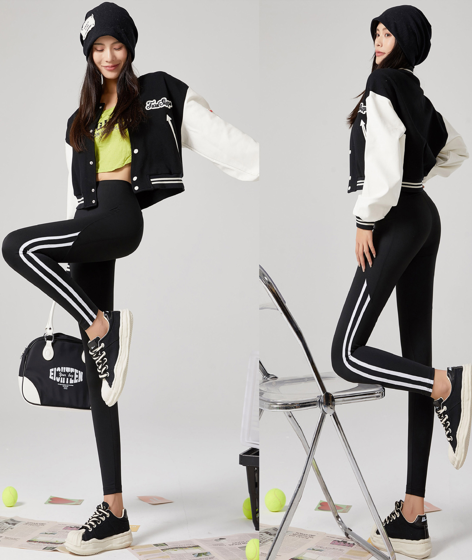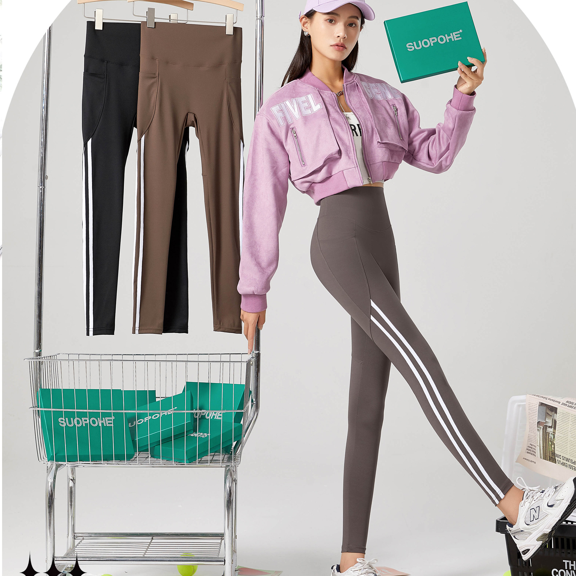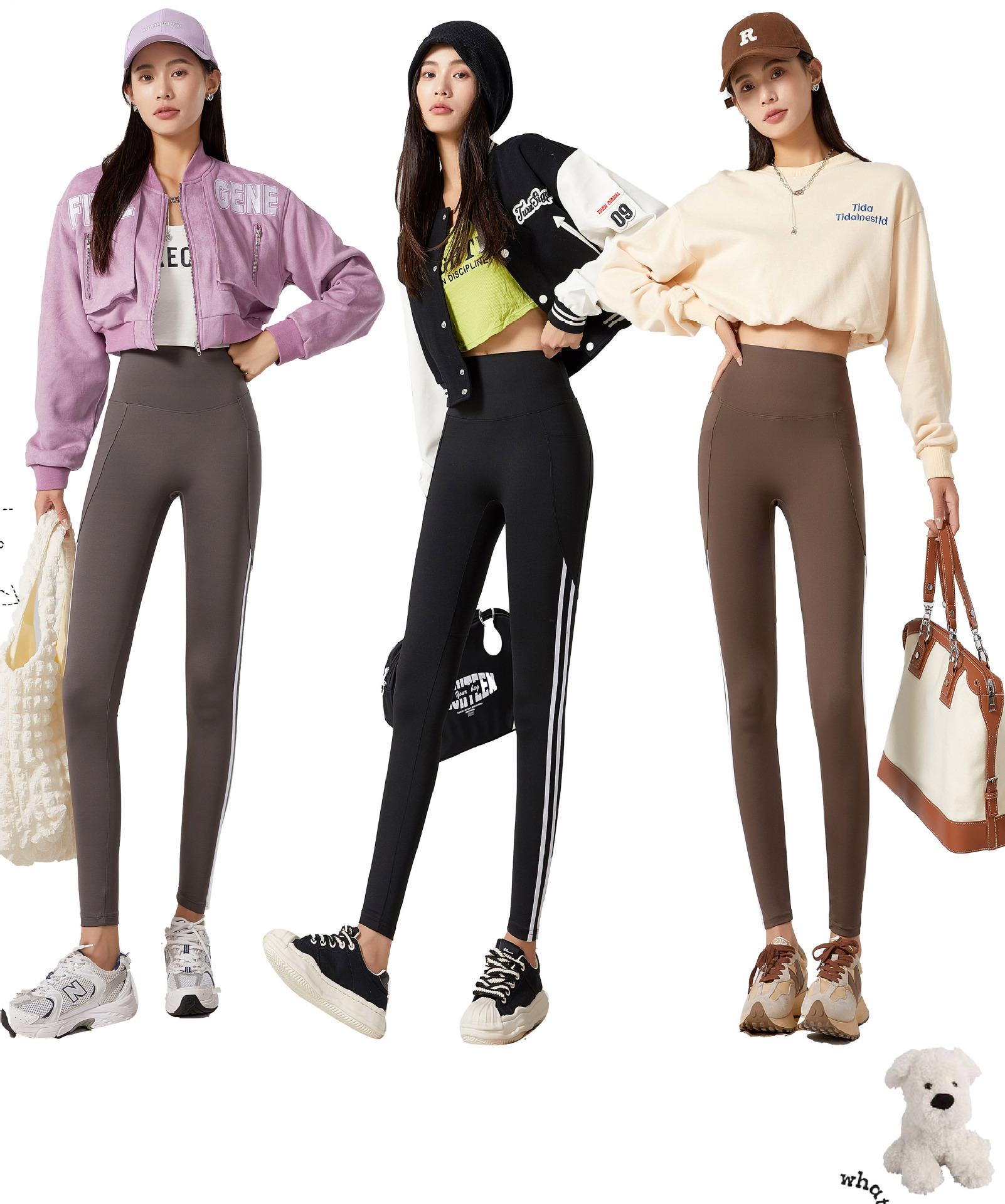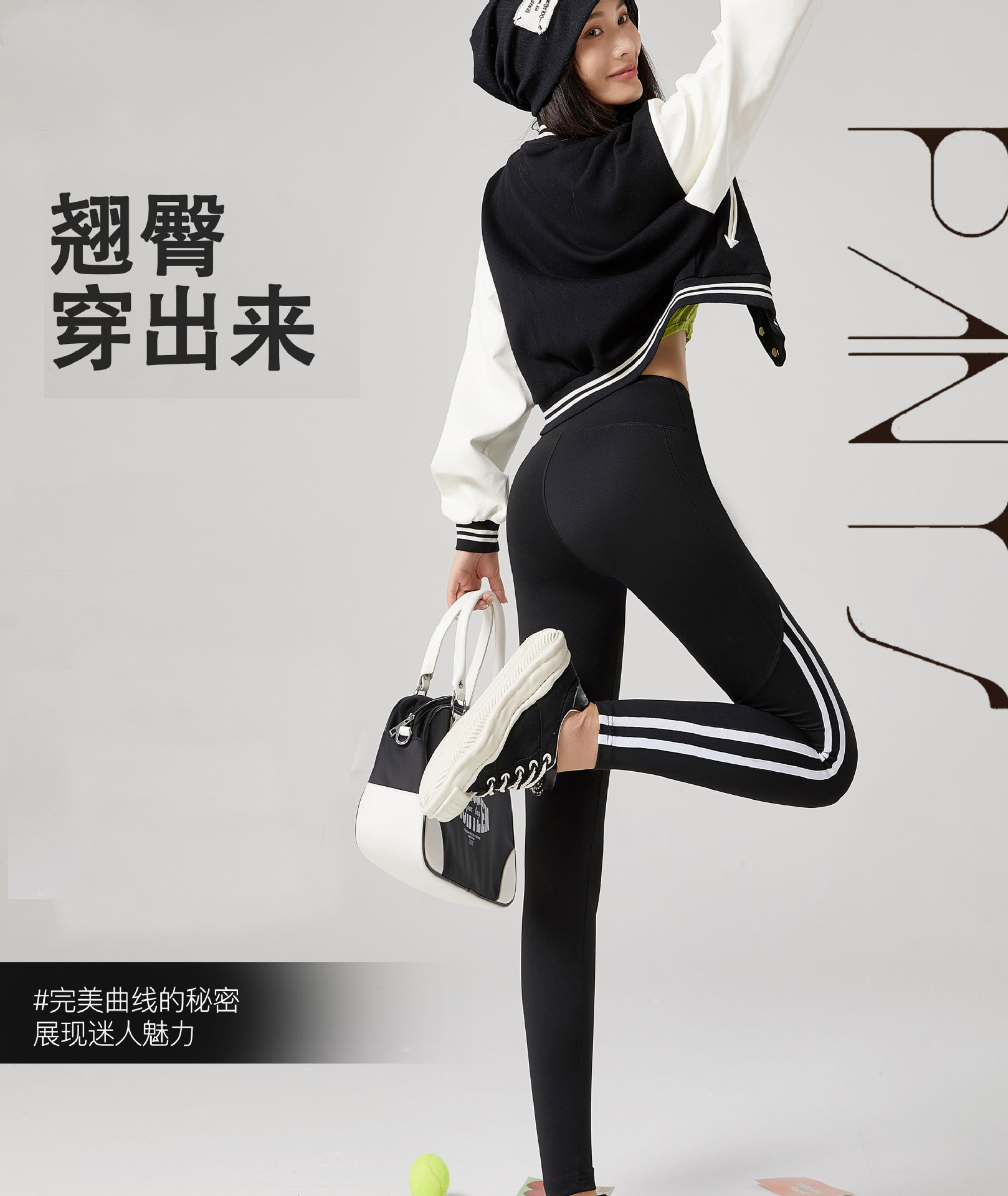 鲨鱼裤女士秋季外穿侧条纹高腰弹力瑜伽芭比裤收腹提臀口袋打底裤