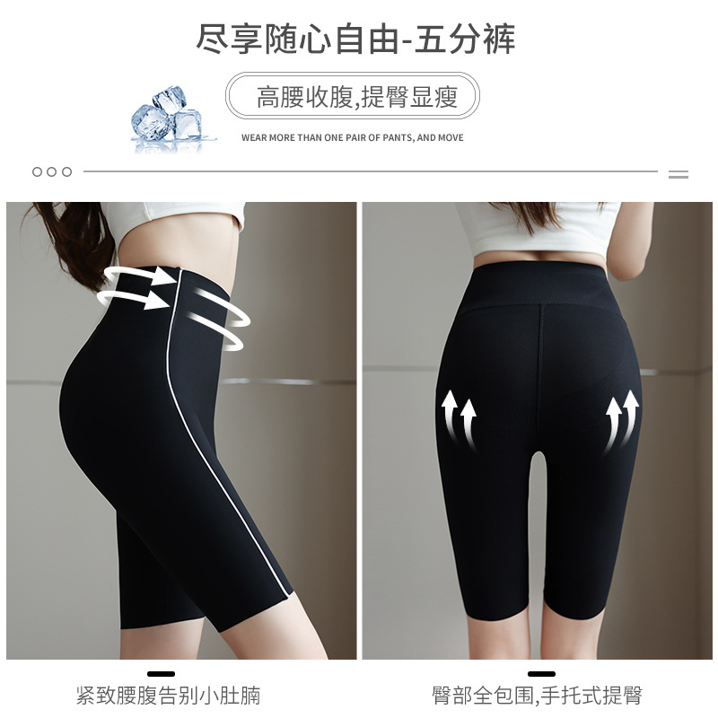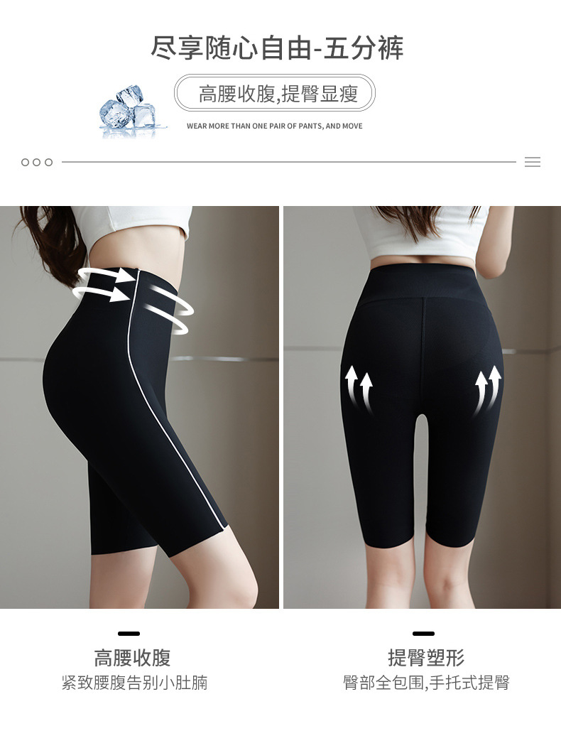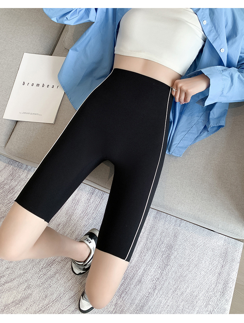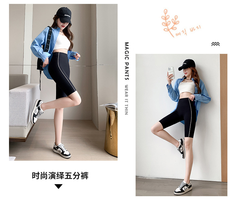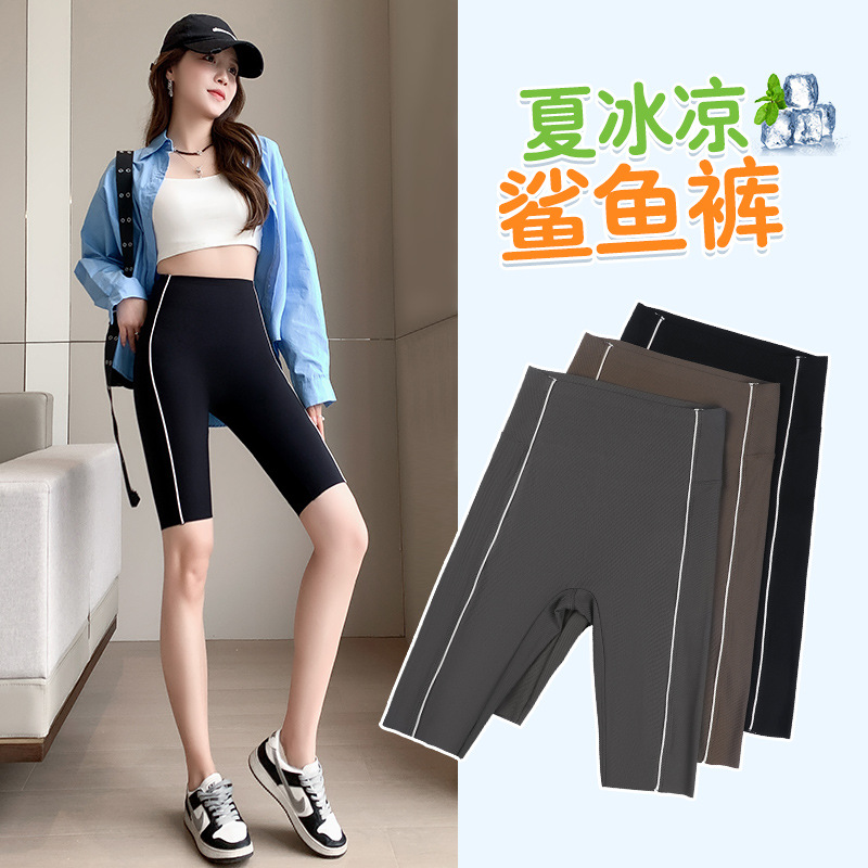 新款夏季五分侧条鲨鱼裤撞色紧身打底裤外穿大码修身芭比裤女批发