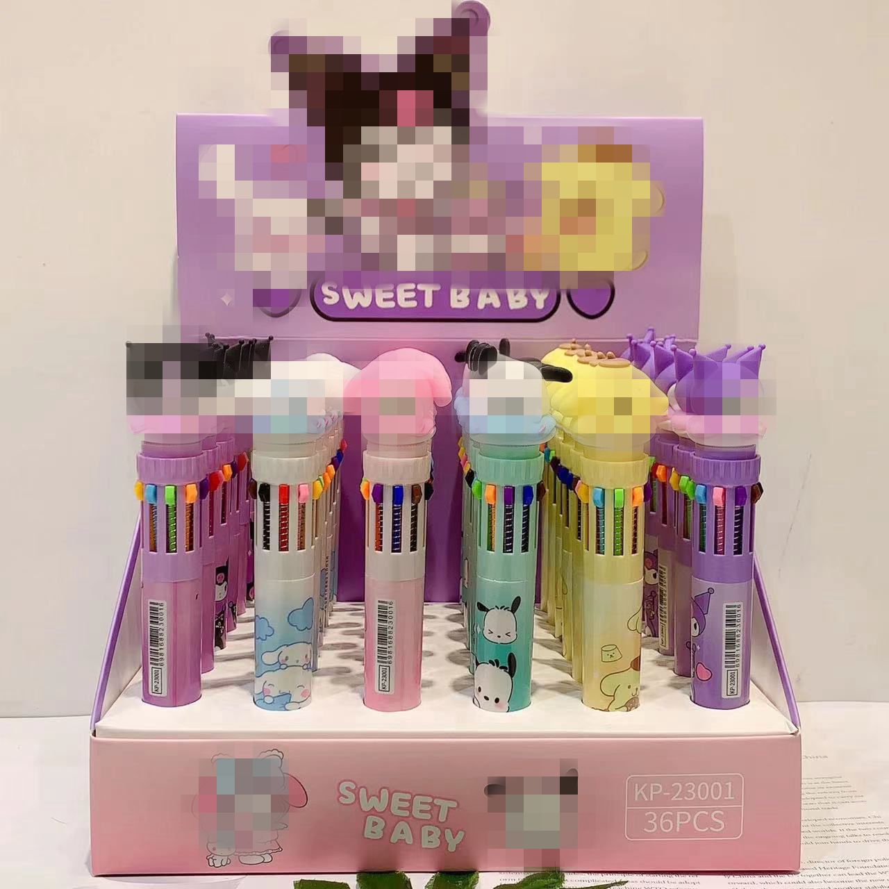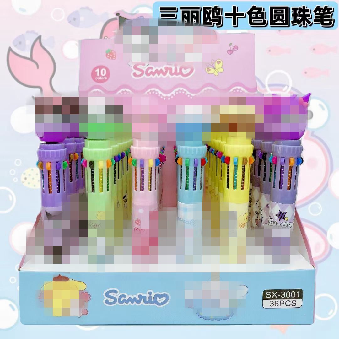 新款三丽鸥十色圆珠笔多色按动手帐笔高颜值造型彩色笔文具批发