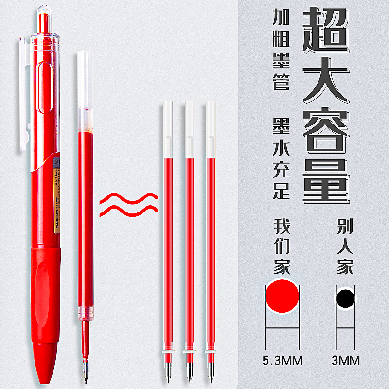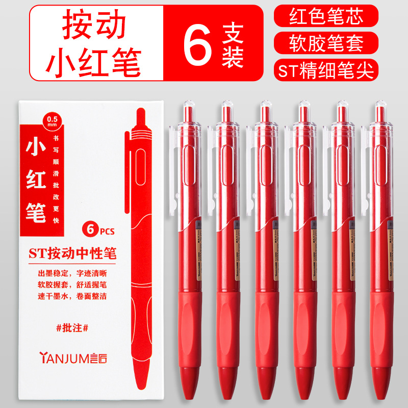 红笔st笔头学生老师批改作业专用红笔中性笔按动0.5圆珠笔水笔签