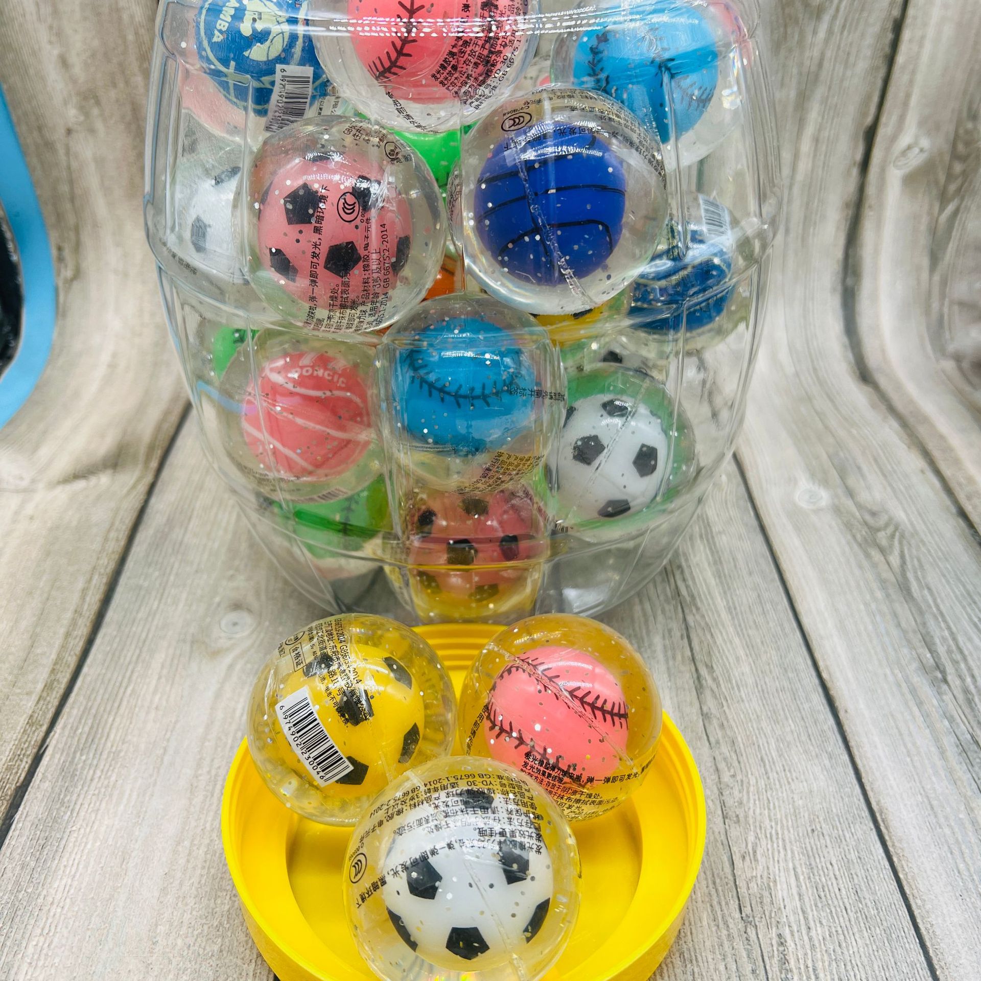 桶装小号直径4.5厘米的一桶25个,6cm大盒的1盒24个,,9CM的一盒12个,水晶球12个一盒,拿整盒的有盒子,拿散的没有盒子,请知悉