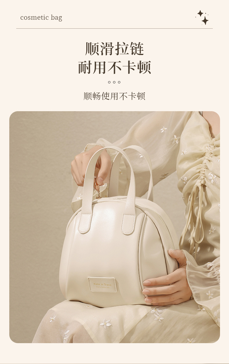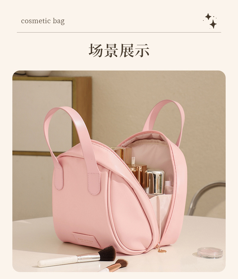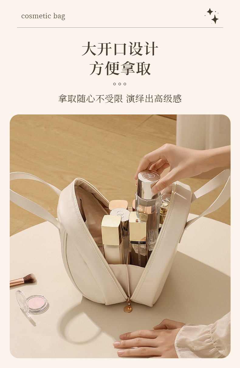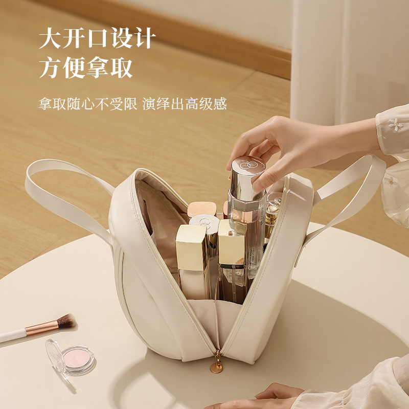 新款贝壳化妆包pu皮手提包包高级感大容量收纳包便携式旅行洗漱包