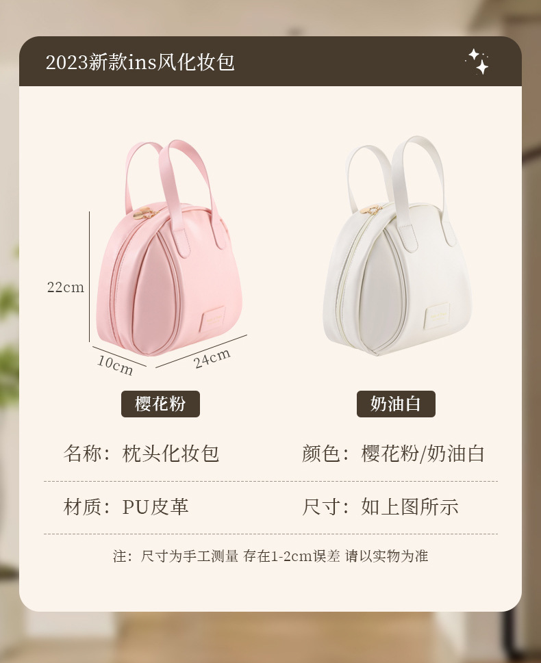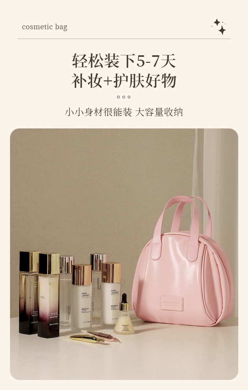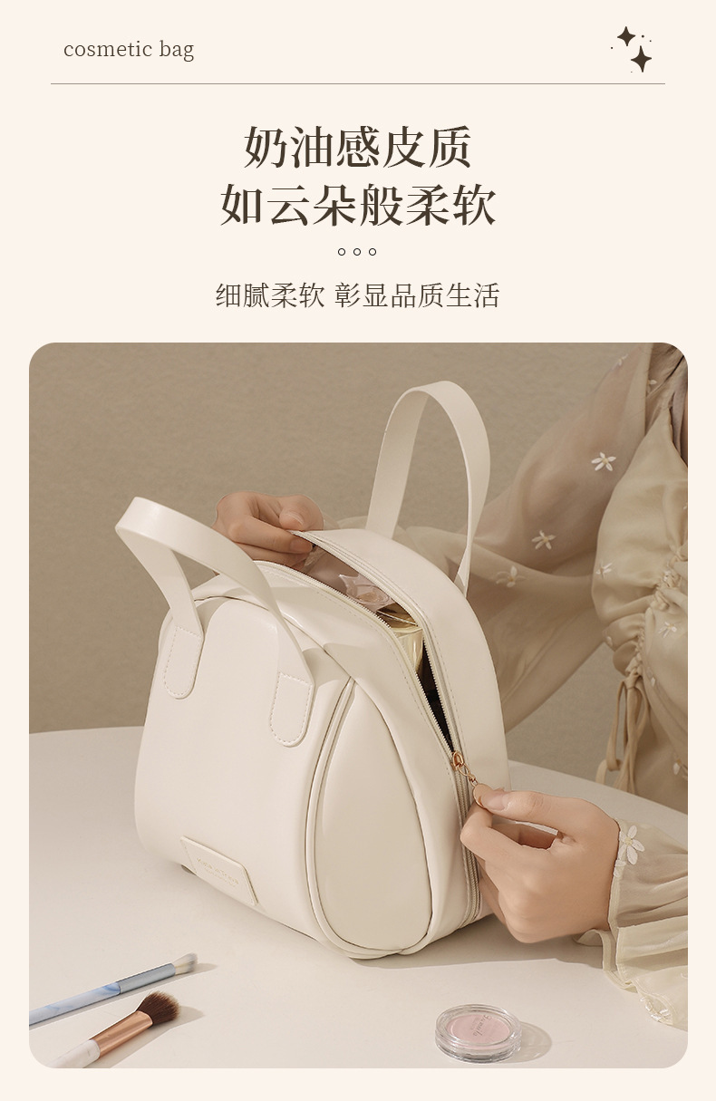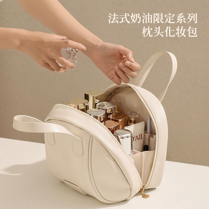 新款贝壳化妆包pu皮手提包包高级感大容量收纳包便携式旅行洗漱包