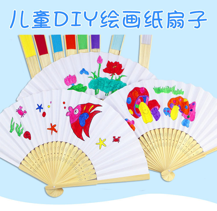 7寸白纸扇 空白色折扇彩色儿童绘画扇子DIY手工涂色素面