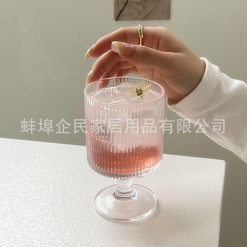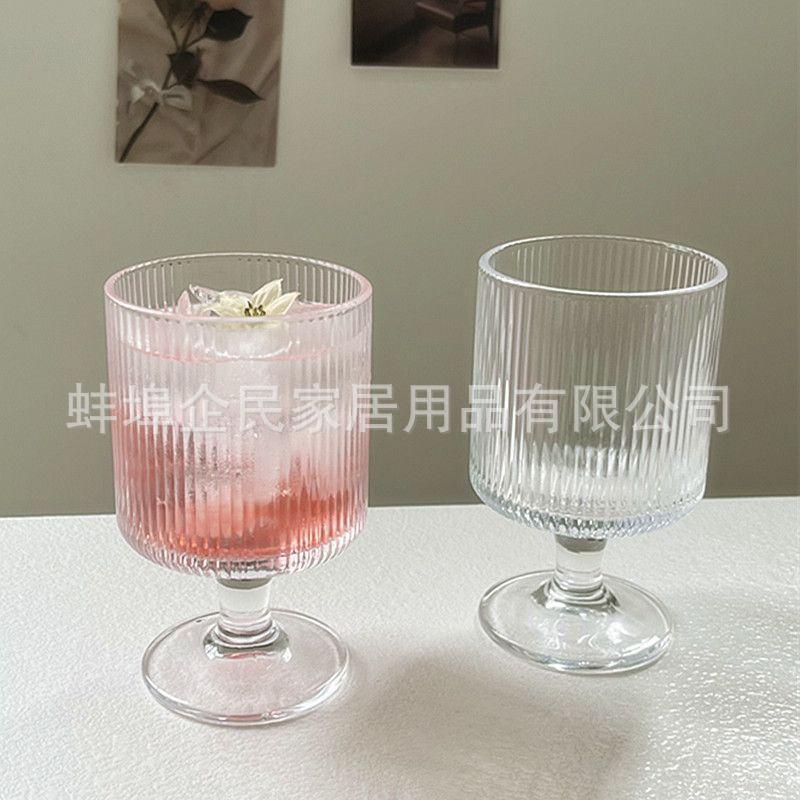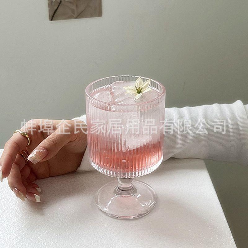 高颜值ins风玻璃杯果汁杯竖纹雪糕酸奶甜品高脚杯饮料水杯设计感