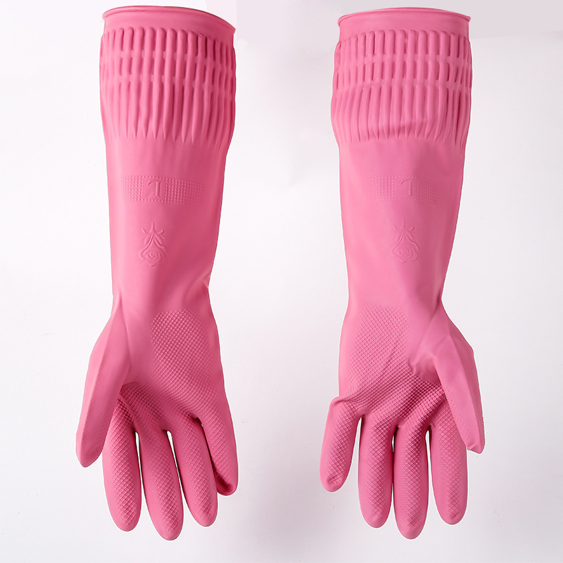38cm粉红色加长家用乳胶手套耐油清洁洗车家务手套批发120g批发