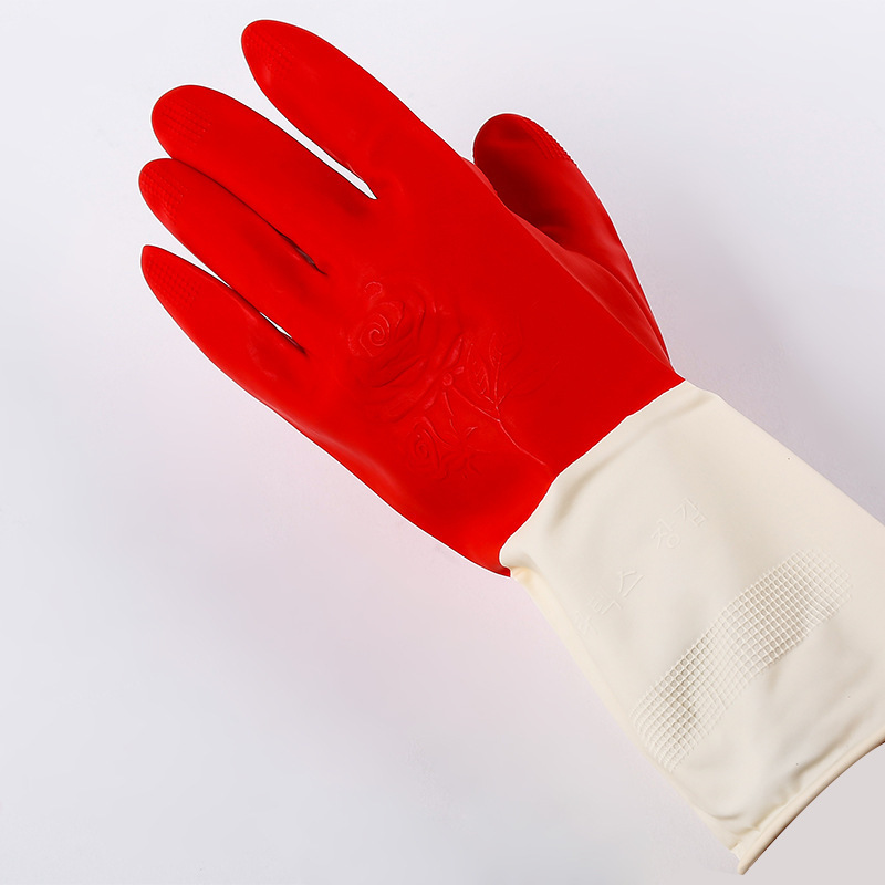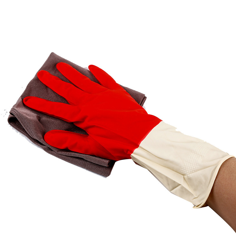 双色乳胶光里家用手套耐酸碱工业乳胶手套清洁洗车手套批发 50g