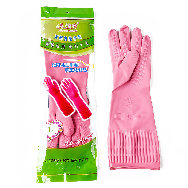 厂家自产自销批发38cm乳胶加长手套粉色洗车清洁家务塑胶手套110g