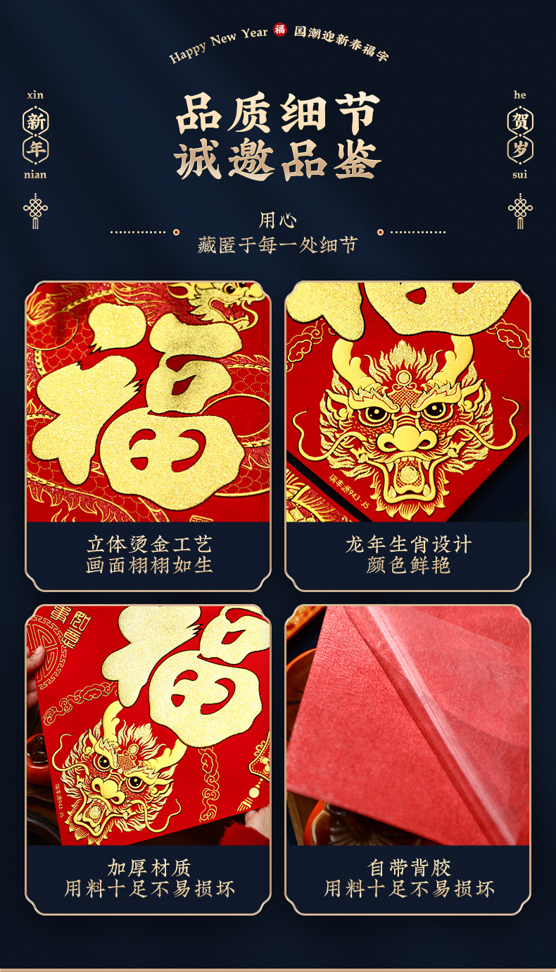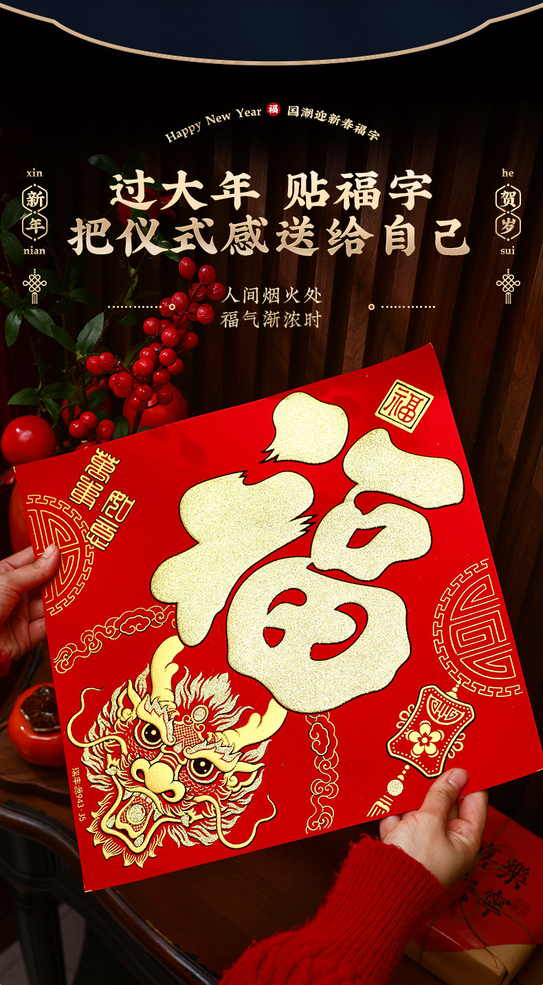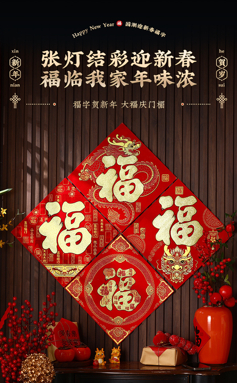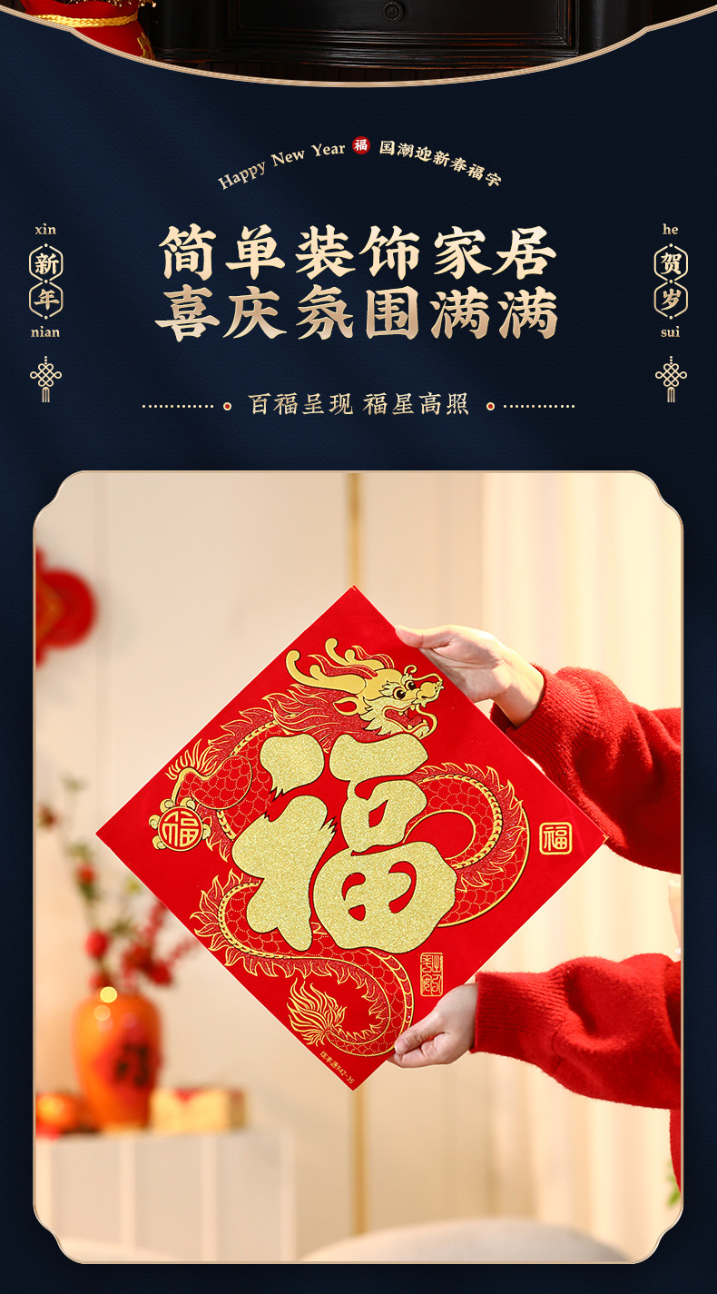 乔迁之喜新居布置新年过节大门福字贴纸自粘窗花仪式布置装饰用品