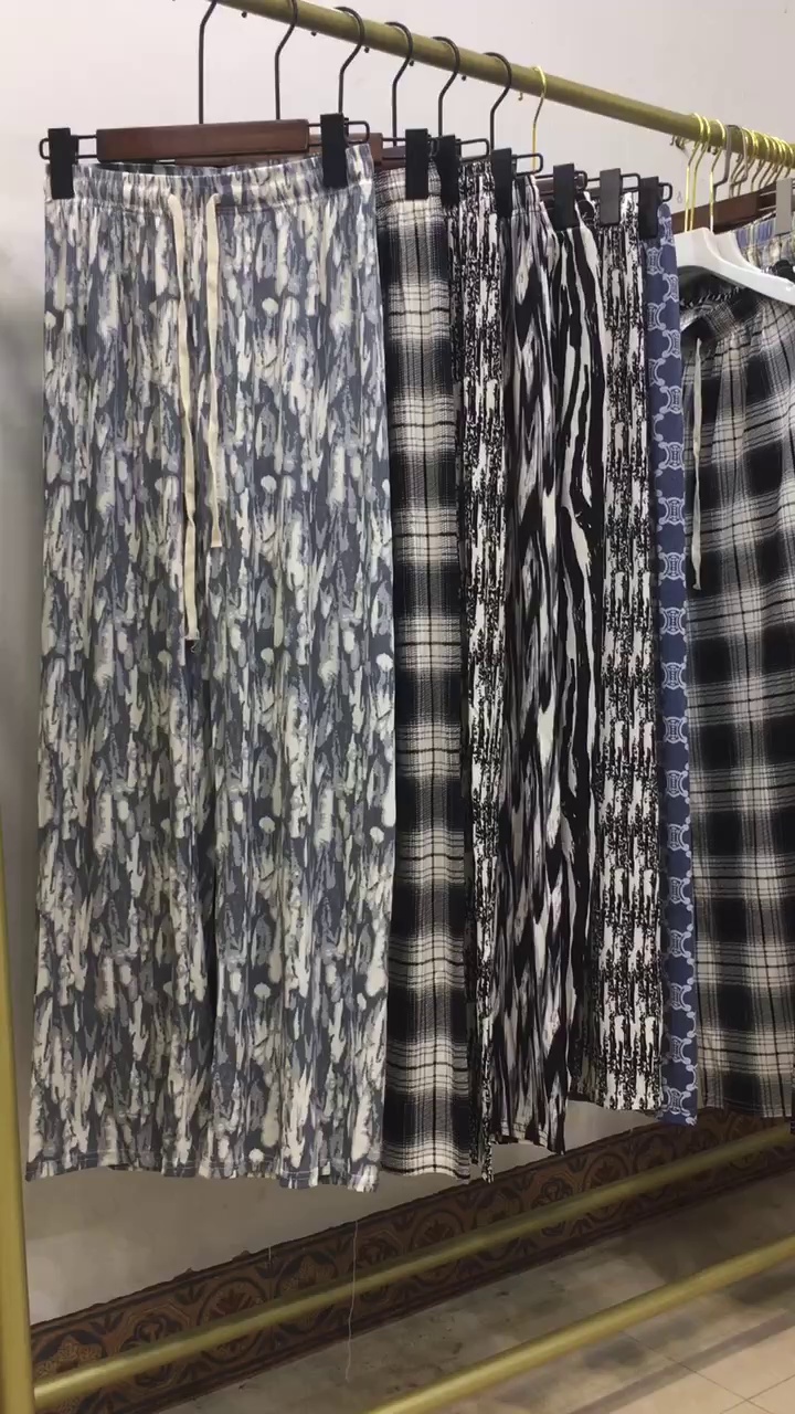 水墨画扎染裤子女夏季薄款韩版休闲冰丝裤垂感拖地裤子直筒阔腿裤