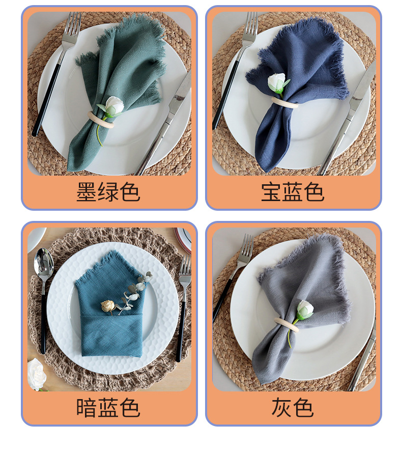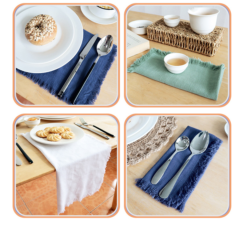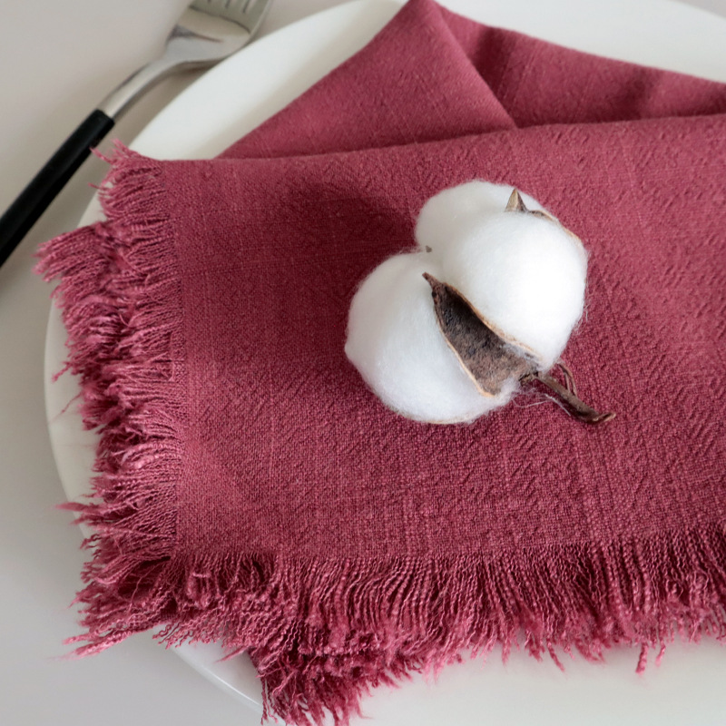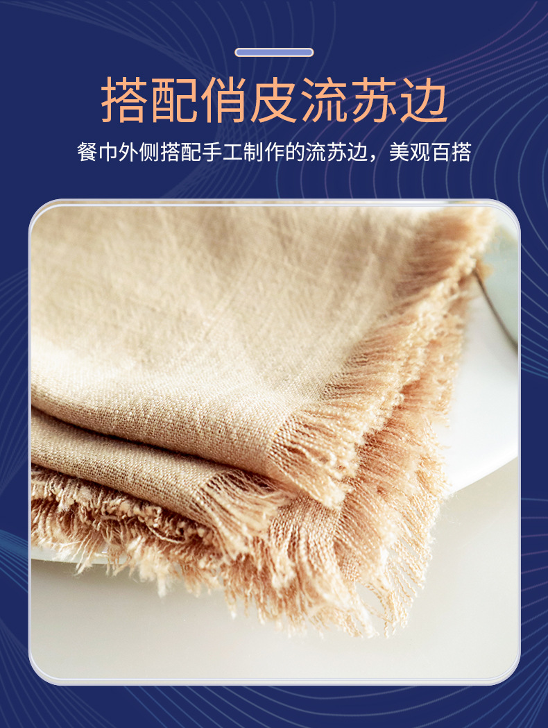 素色棉麻流苏餐巾布 跨境货源家用厨房巾