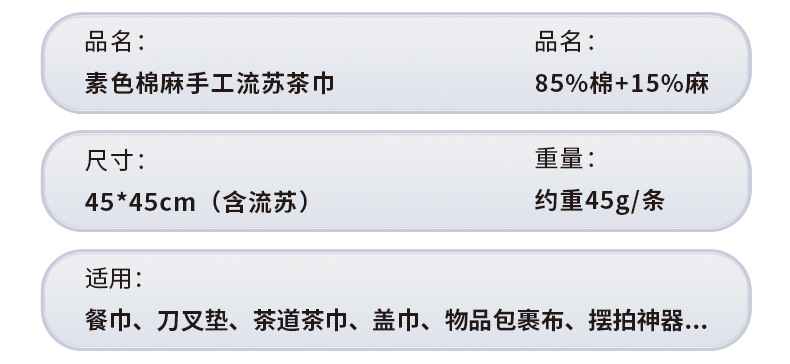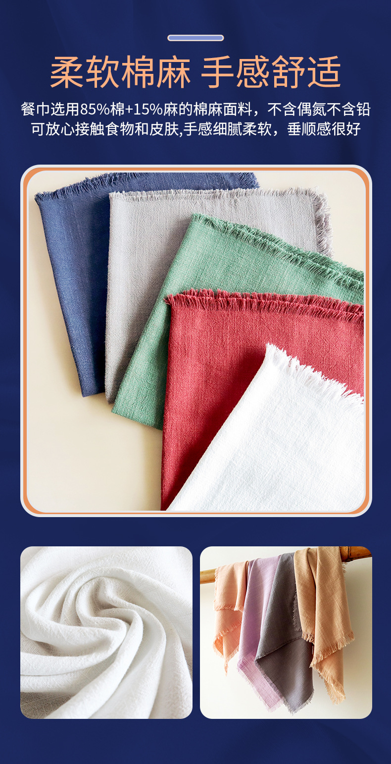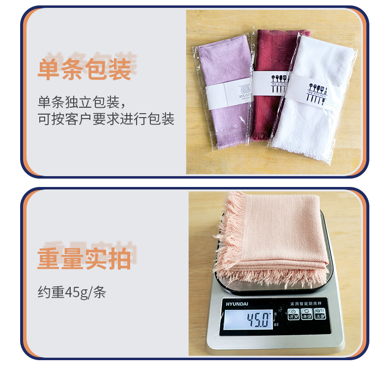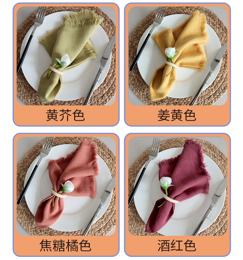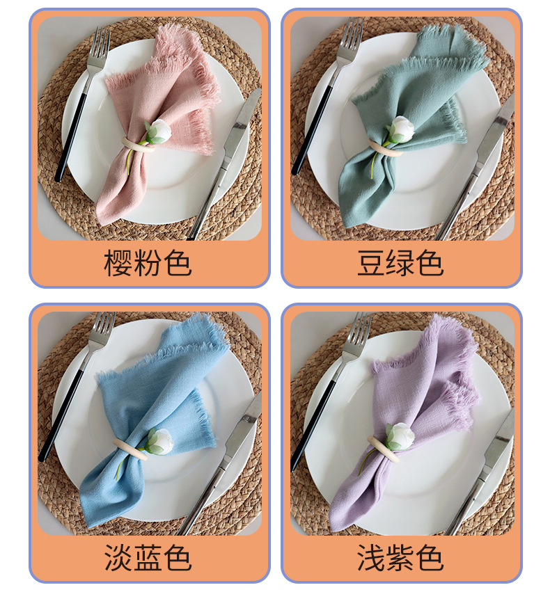 素色棉麻流苏餐巾布 跨境货源家用厨房巾
