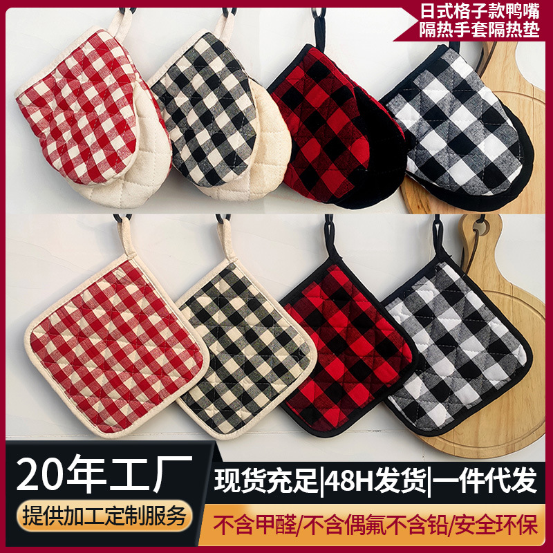隔热手套日式格子款鸭嘴手套隔热垫烘焙手套微波炉防烫餐垫