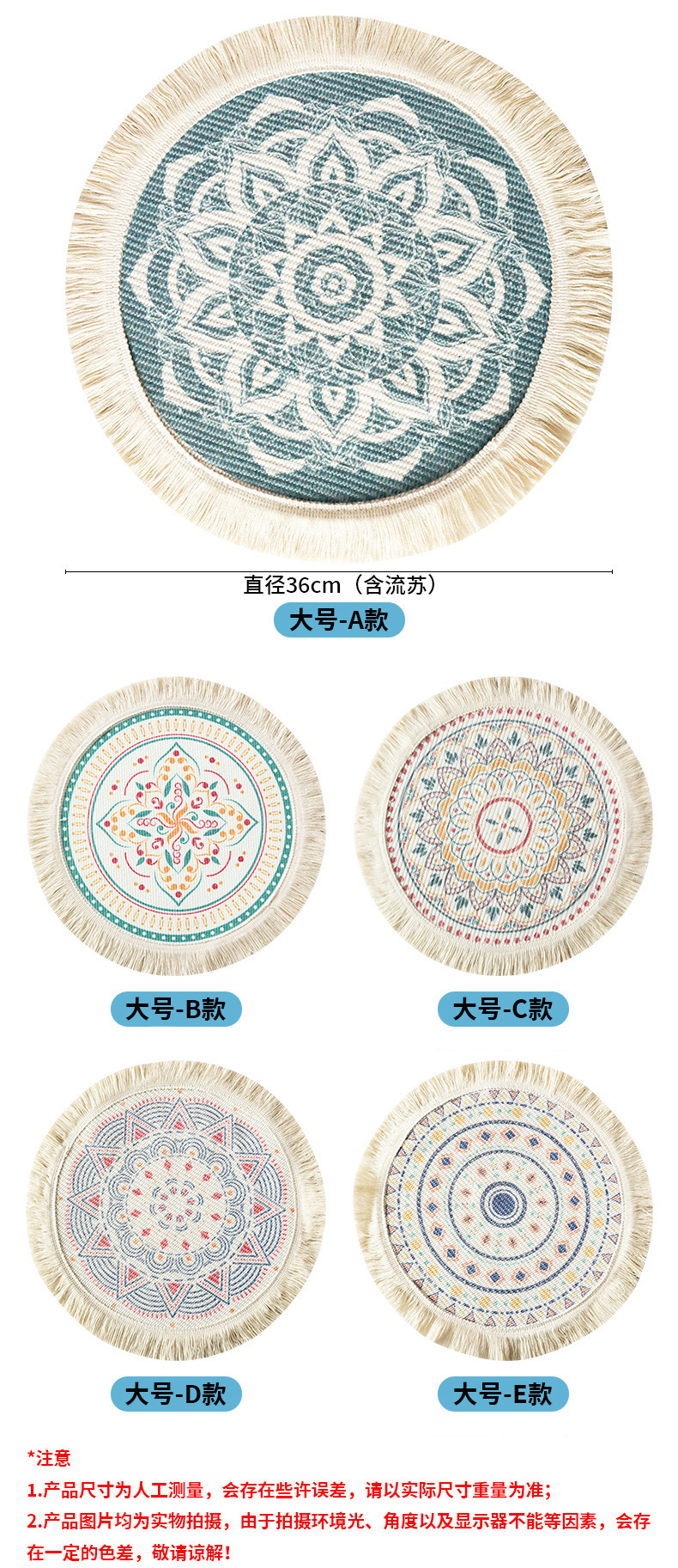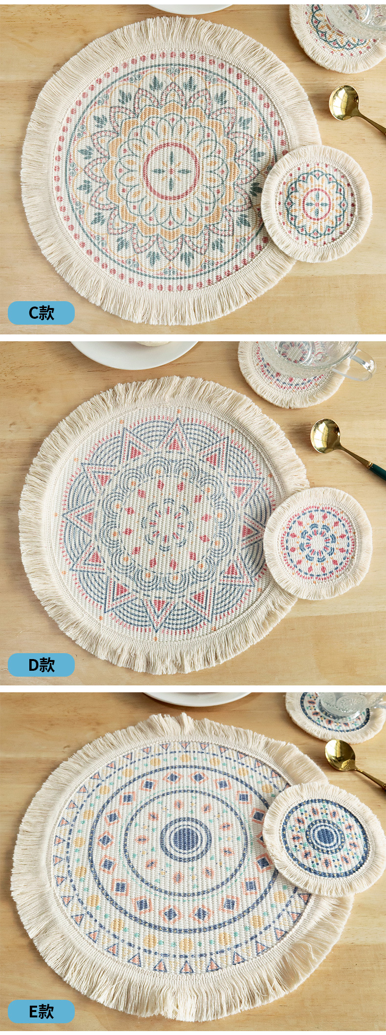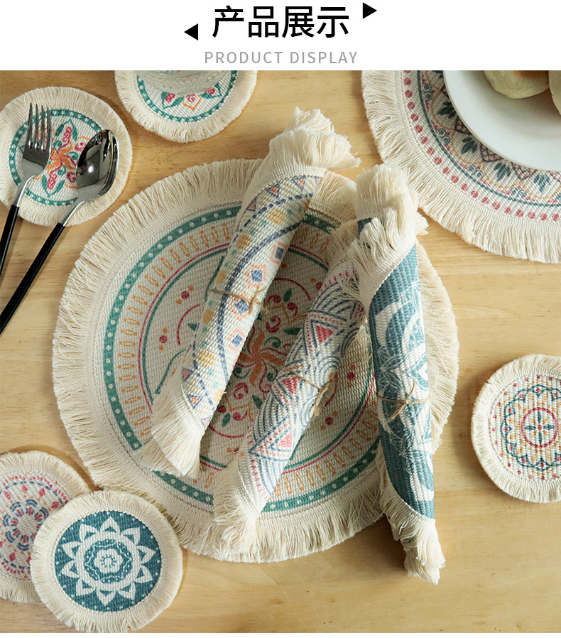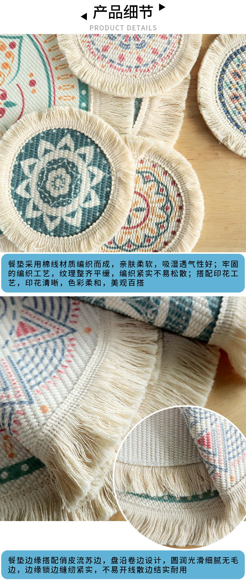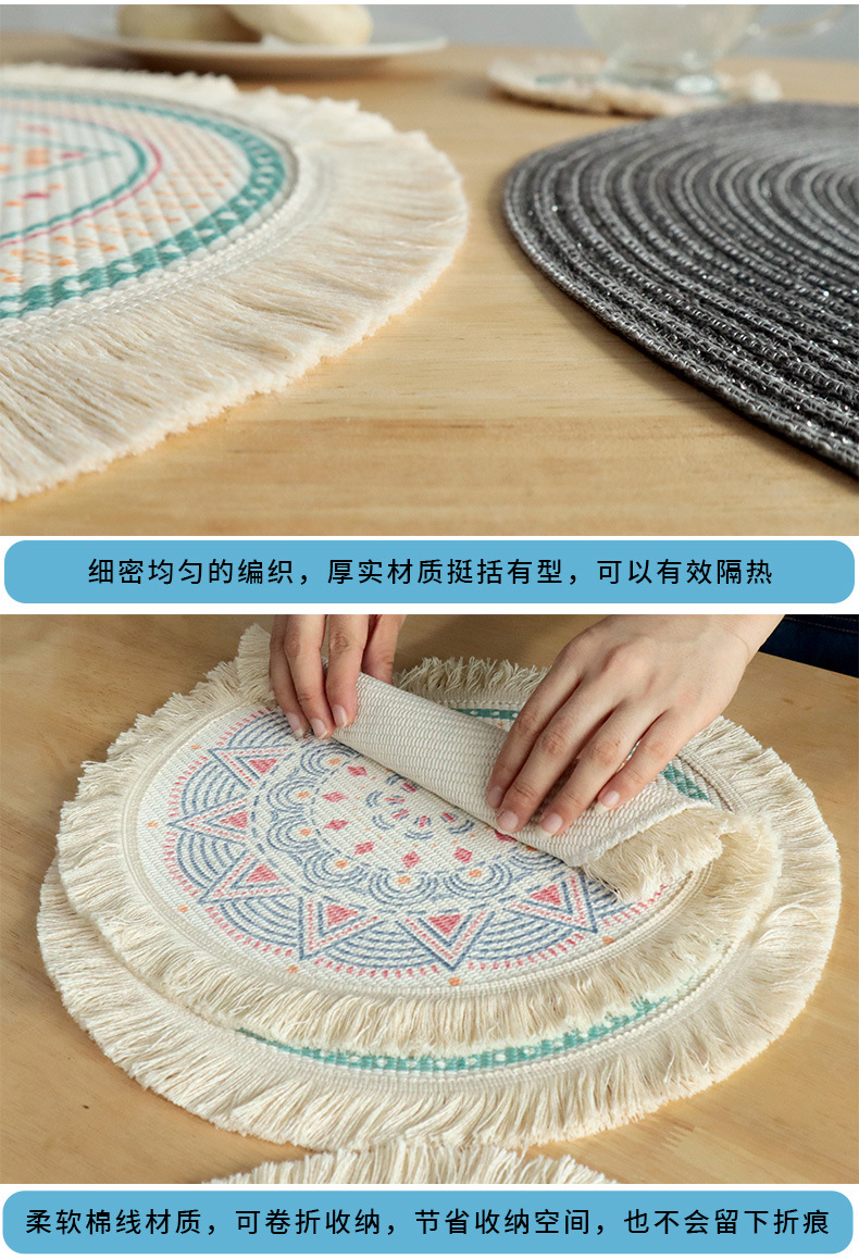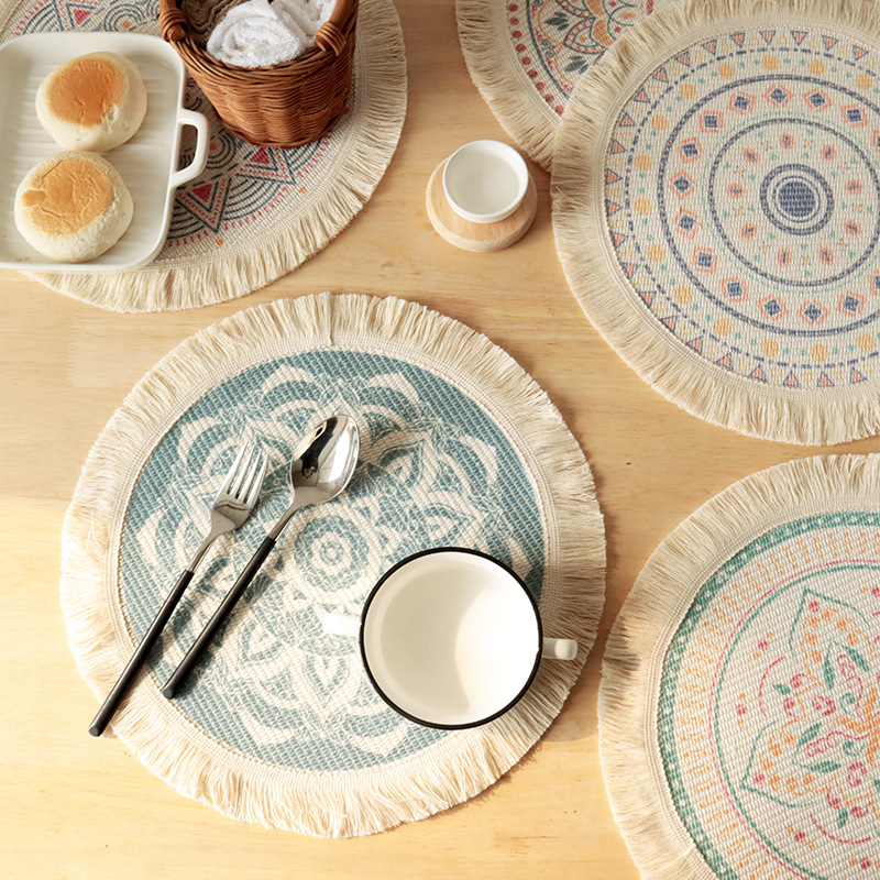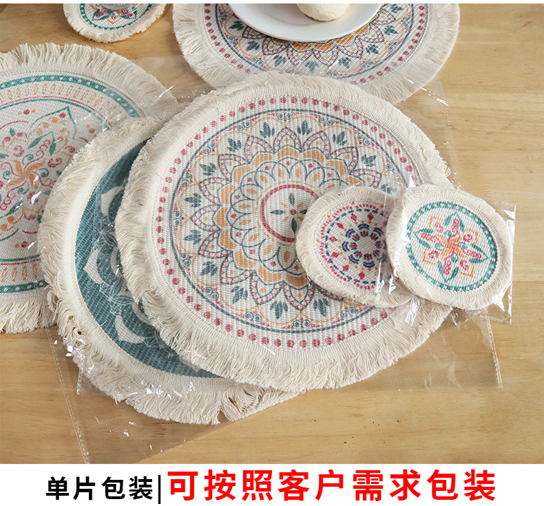 印花餐垫波西米亚风印花流苏餐垫曼陀罗隔热垫家居厨房用装饰垫