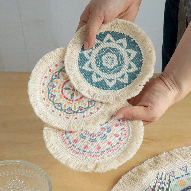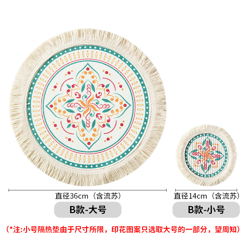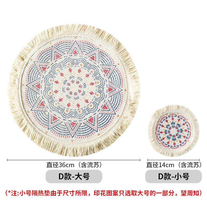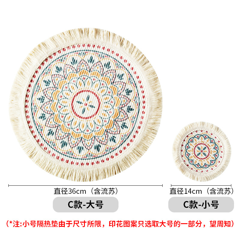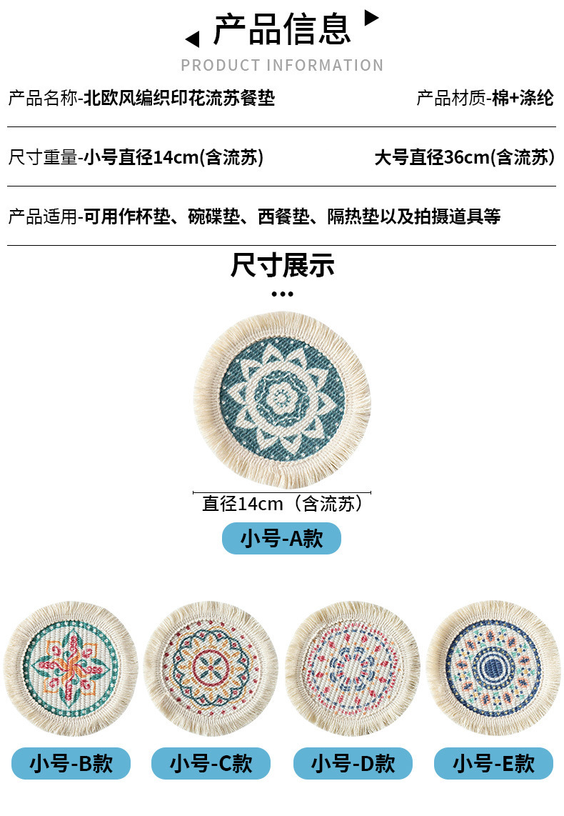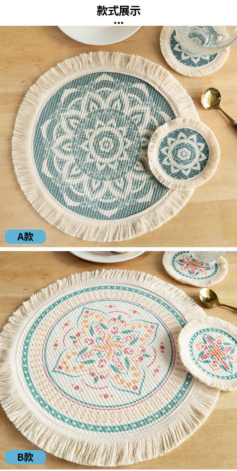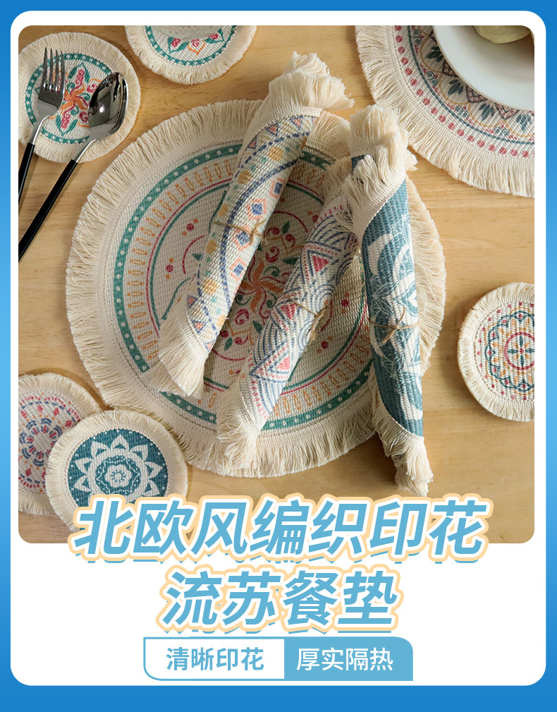 印花餐垫波西米亚风印花流苏餐垫曼陀罗隔热垫家居厨房用装饰垫