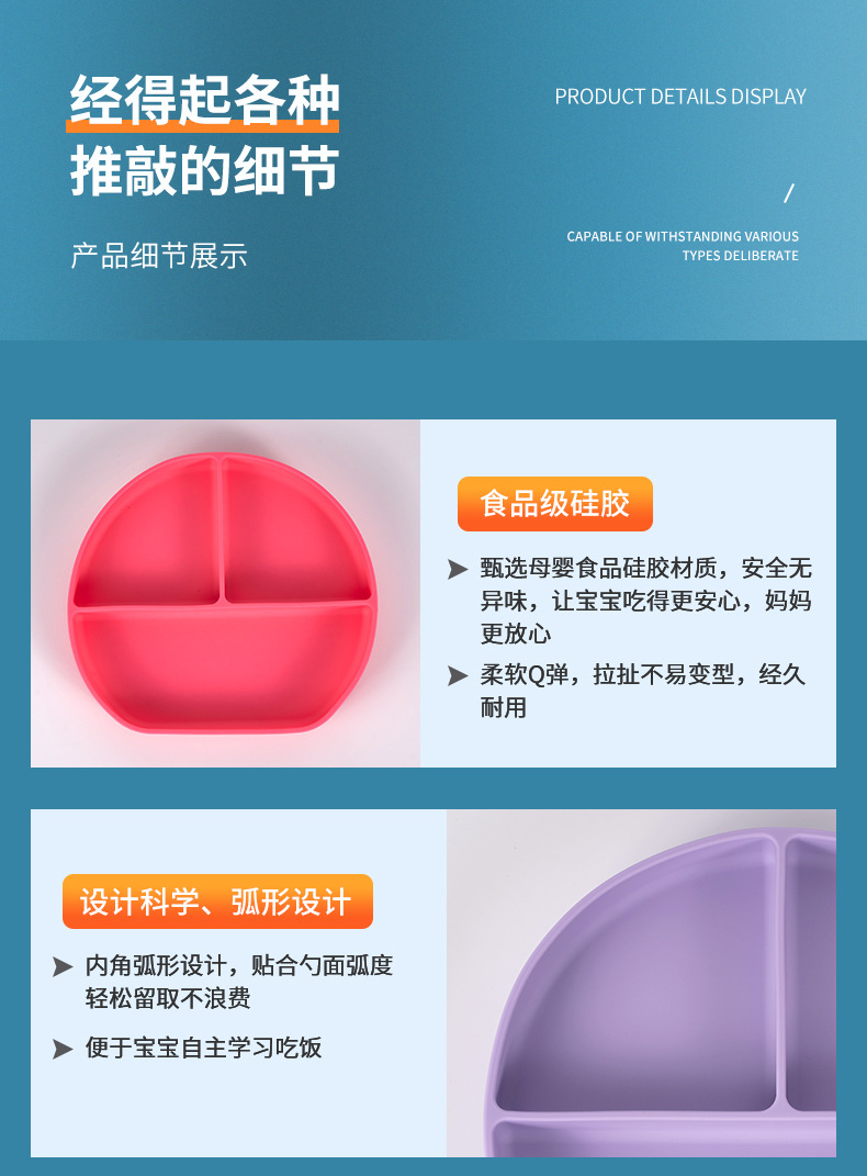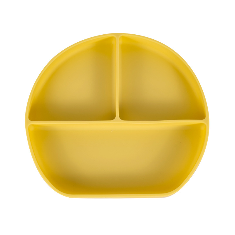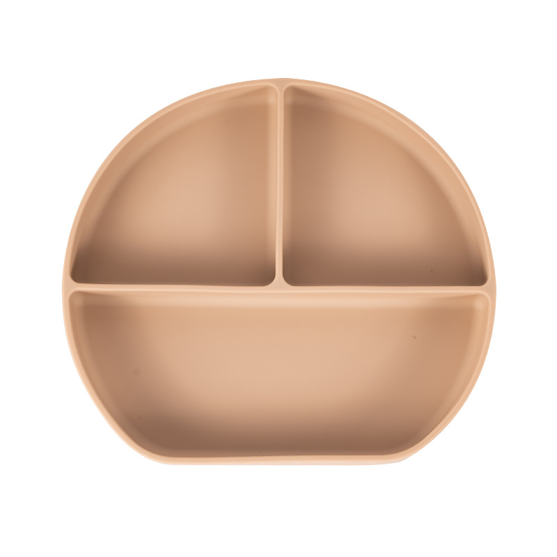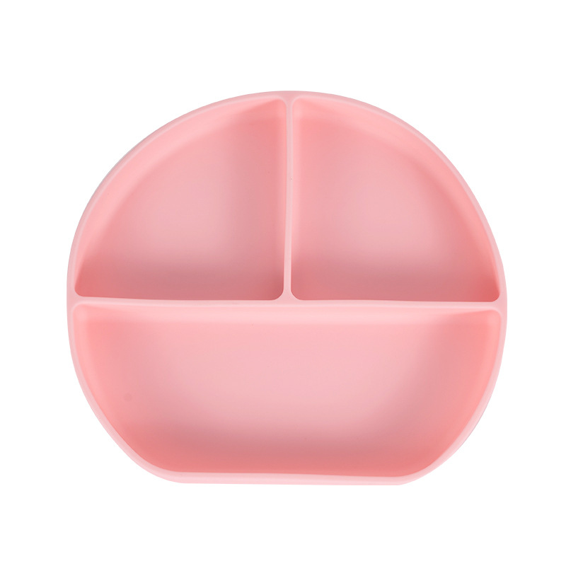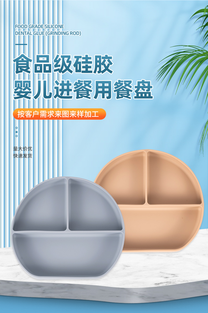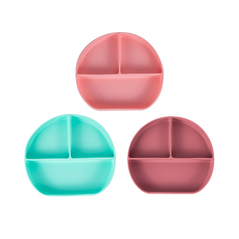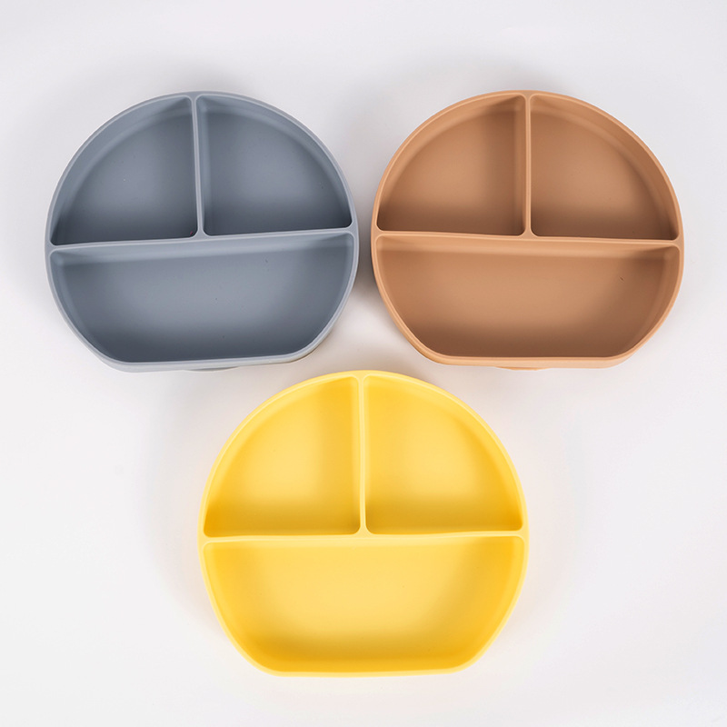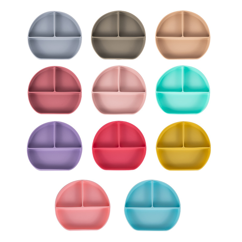可定制儿童圆形硅胶餐盘食品级吸盘式宝宝分格餐盘婴儿辅食餐具