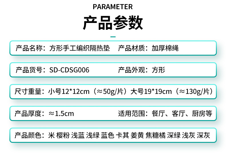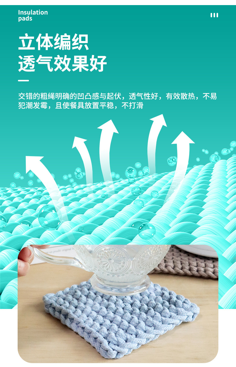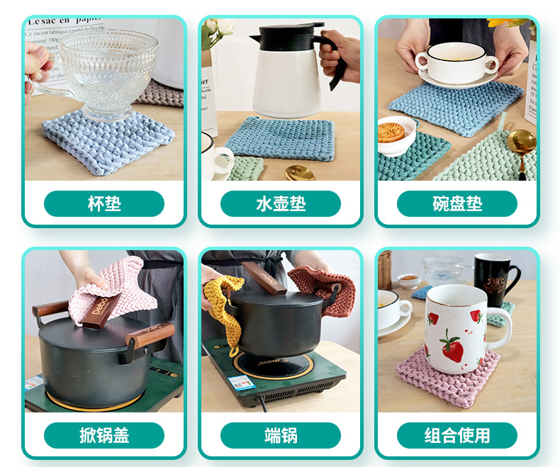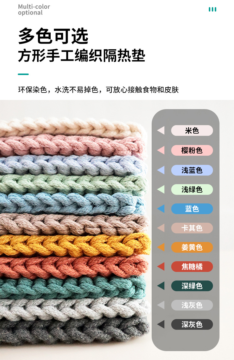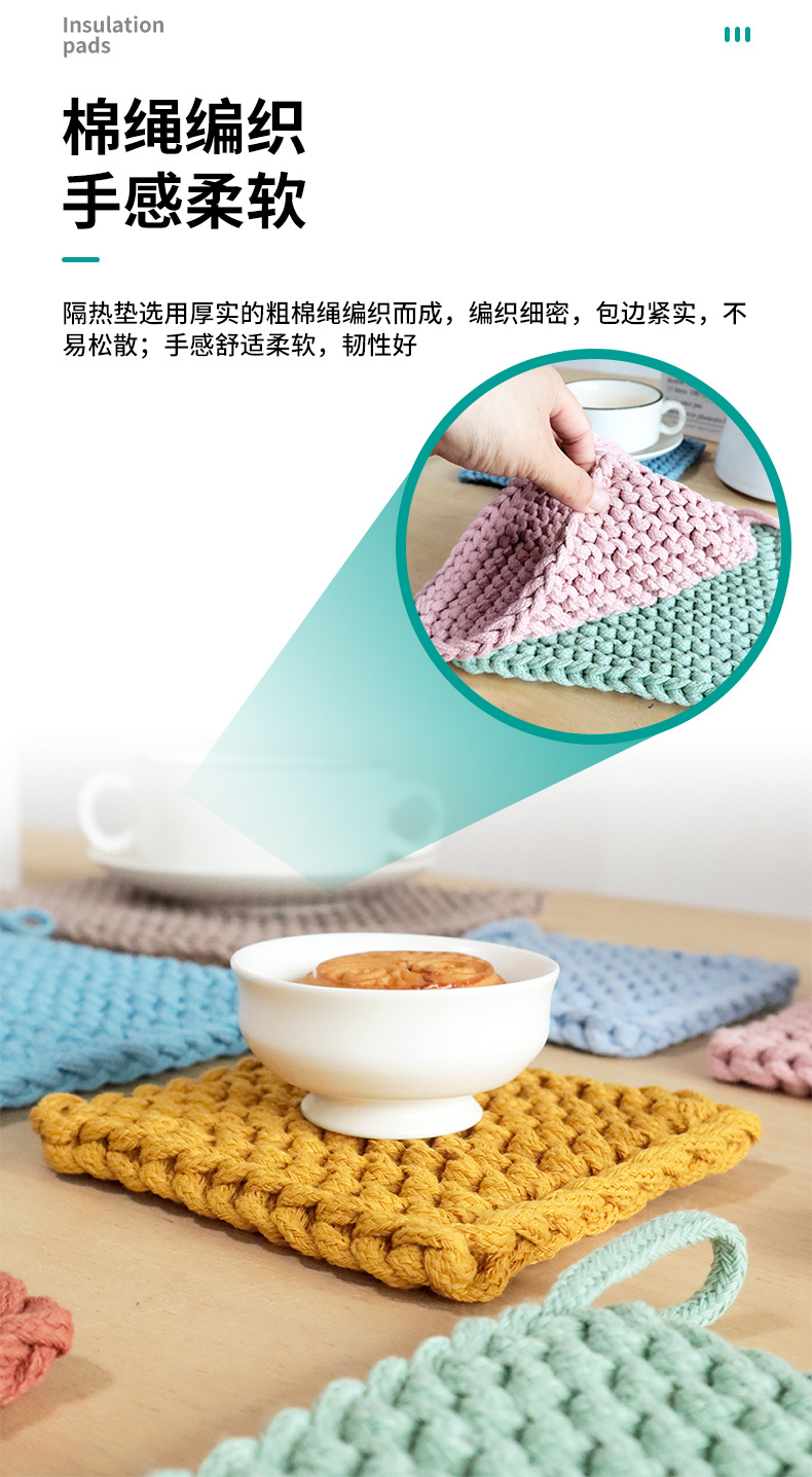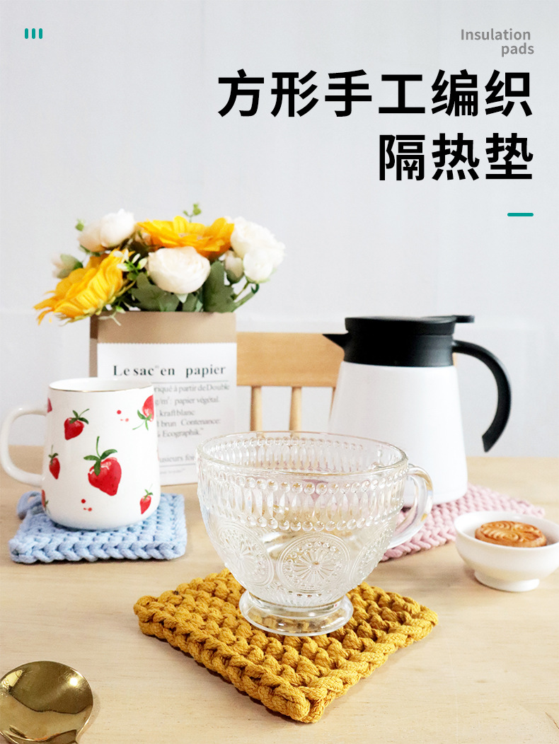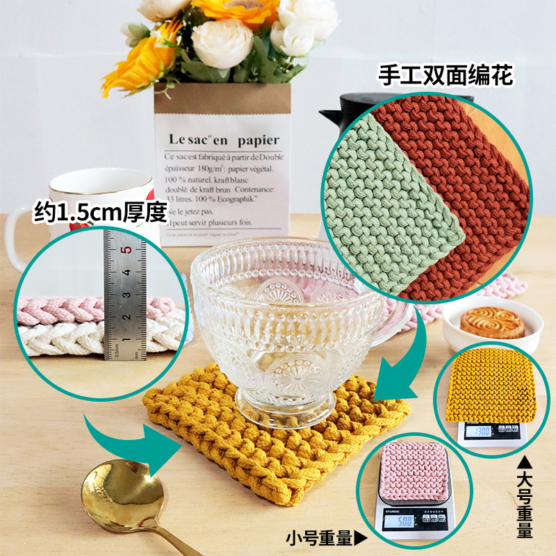 日式隔热垫家居厨房用餐垫方形杯垫编织隔热盘垫素色盘垫马克杯垫