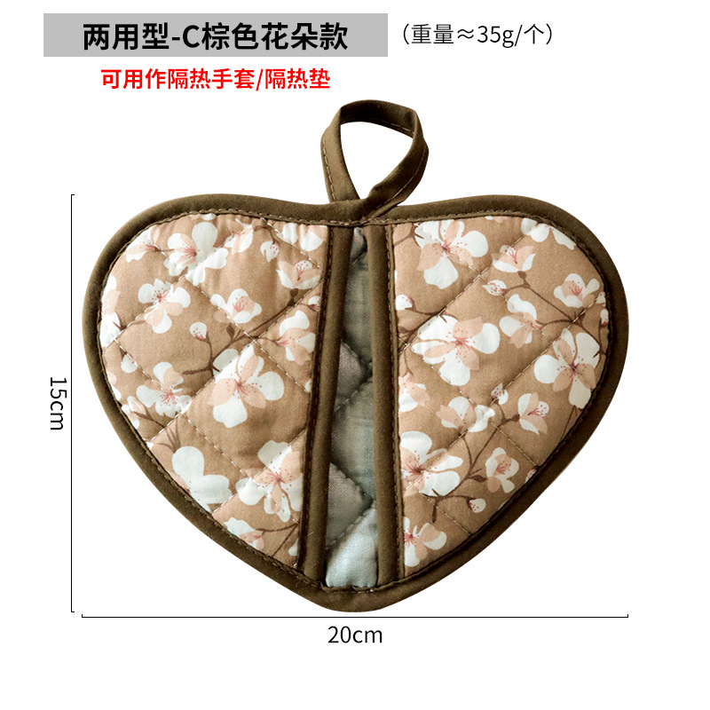 日式烘焙手套家居厨房防烫耐高温烤箱手套加厚棉心形手夹隔热垫