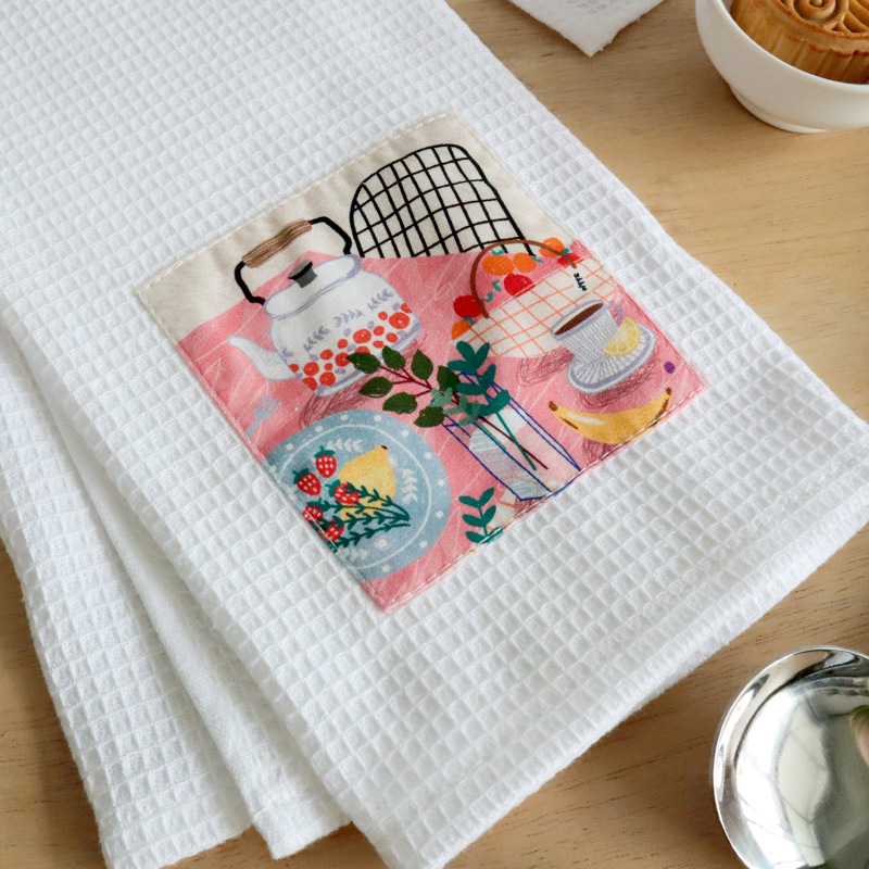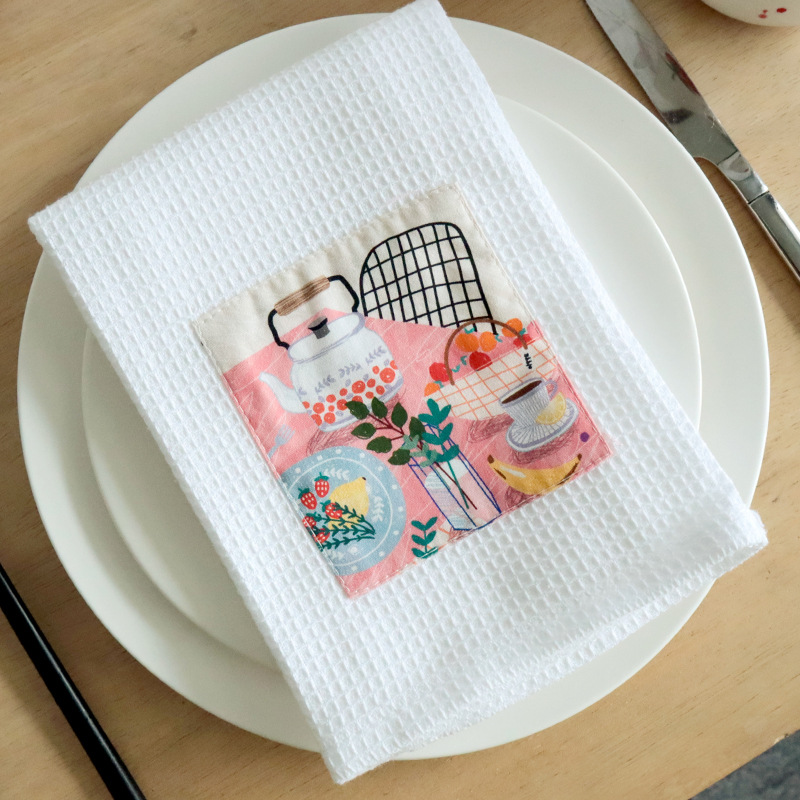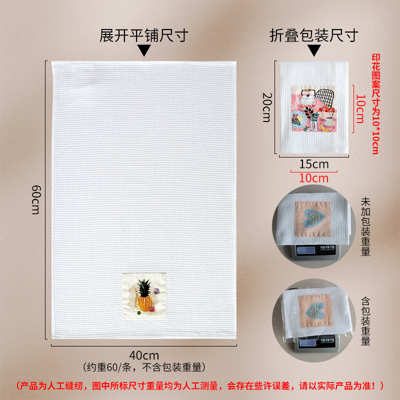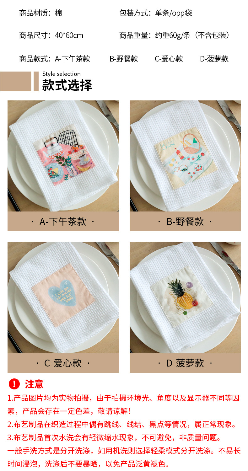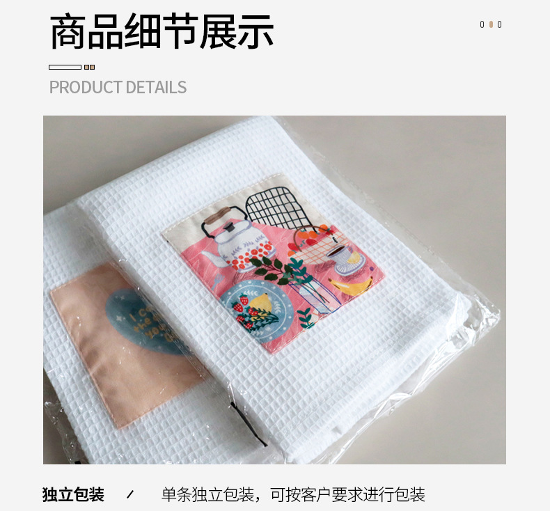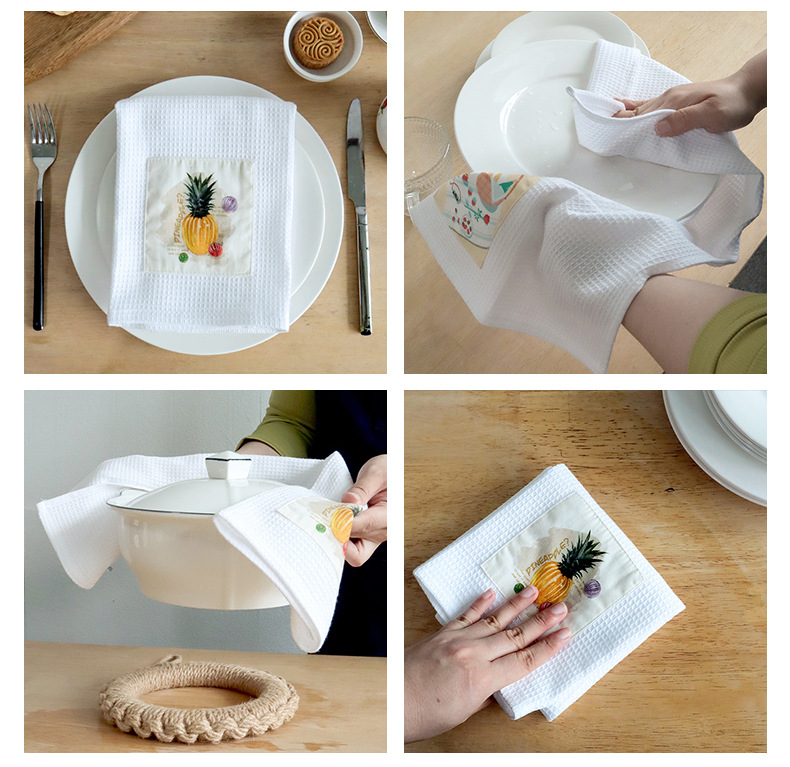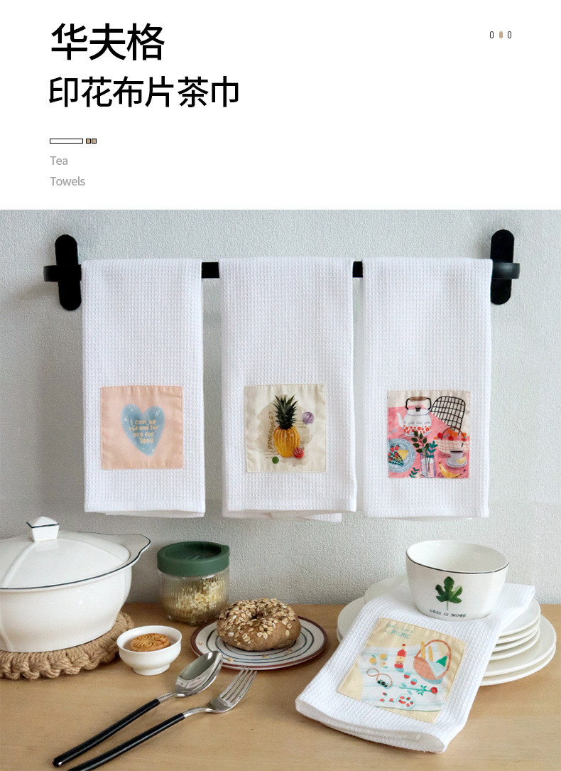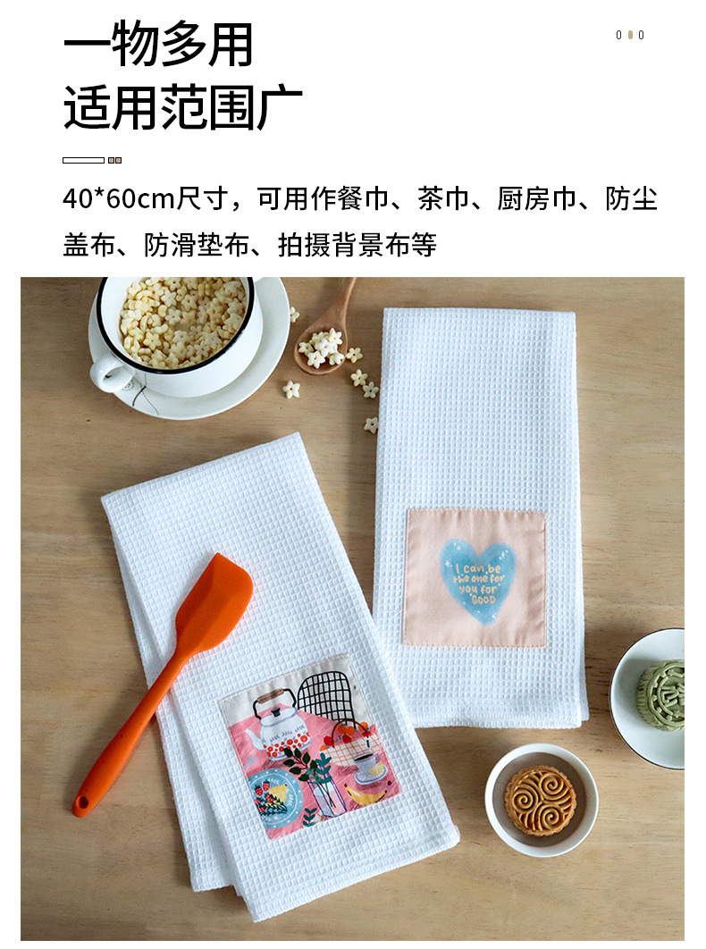 厨房巾家用擦手巾厨房沥水垫华夫格餐巾印花餐巾布