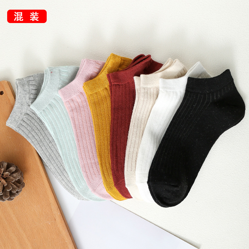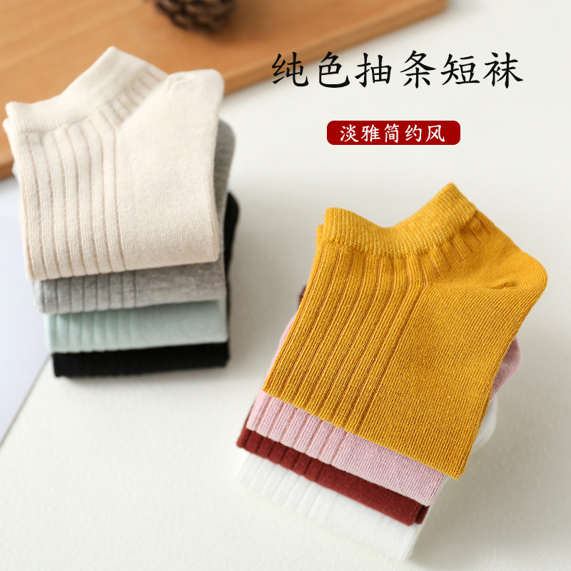 抽条袜子女浅口短袜春夏季薄款透气船袜简约纯色短筒棉袜现货女袜