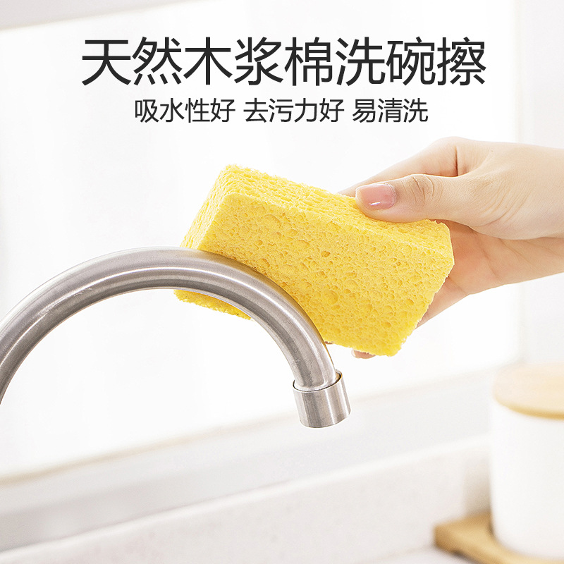 洗碗海绵天然木浆棉百洁布刷洗碗抹布不沾油木浆海绵块吸水魔力擦