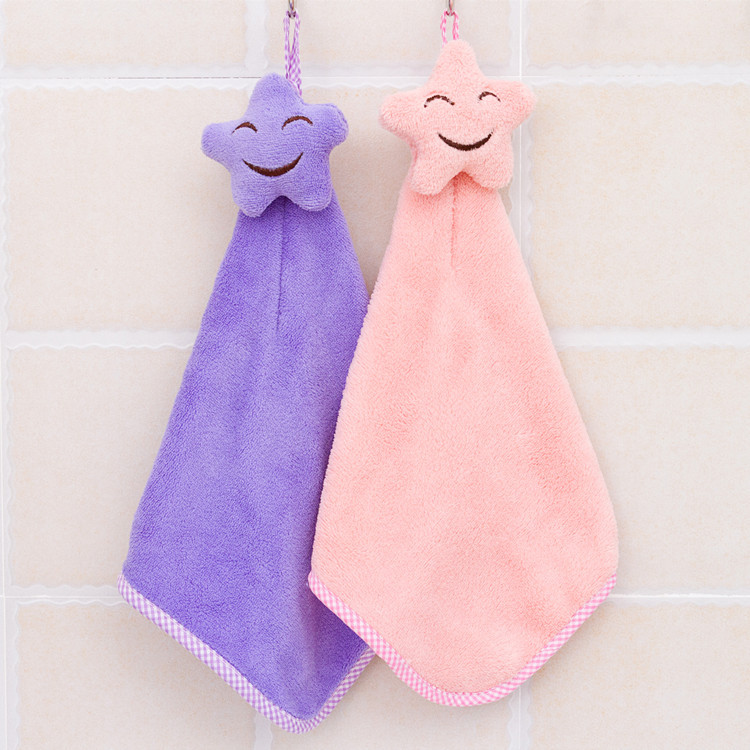 挂式可爱笑脸珊瑚绒擦手巾毛巾厨房加厚吸水不掉毛抹布洗碗布
