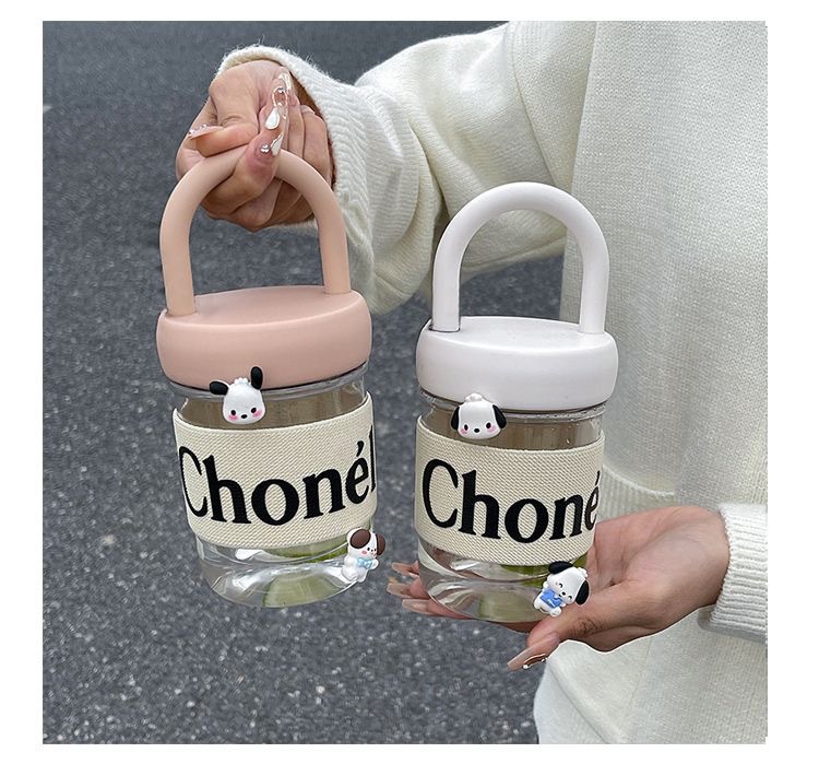 网红ins小香风玻璃水杯便携手提咖啡杯随行杯高颜值新款礼品水杯