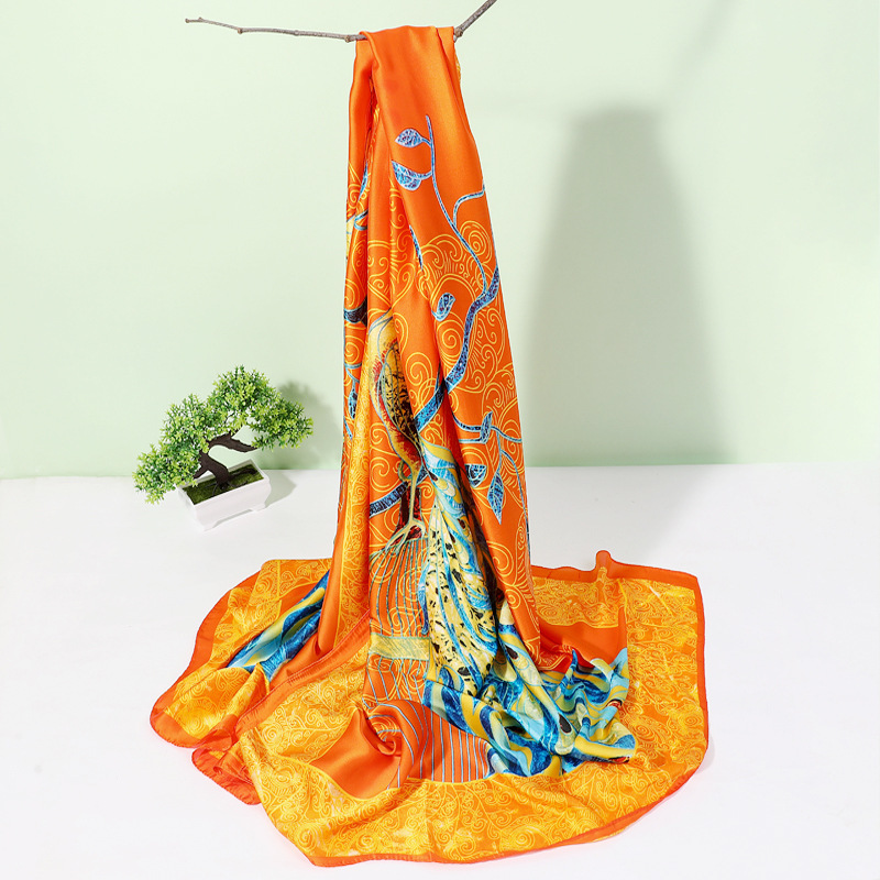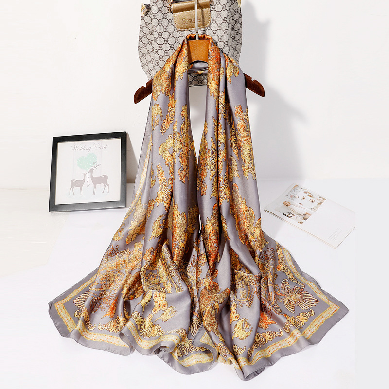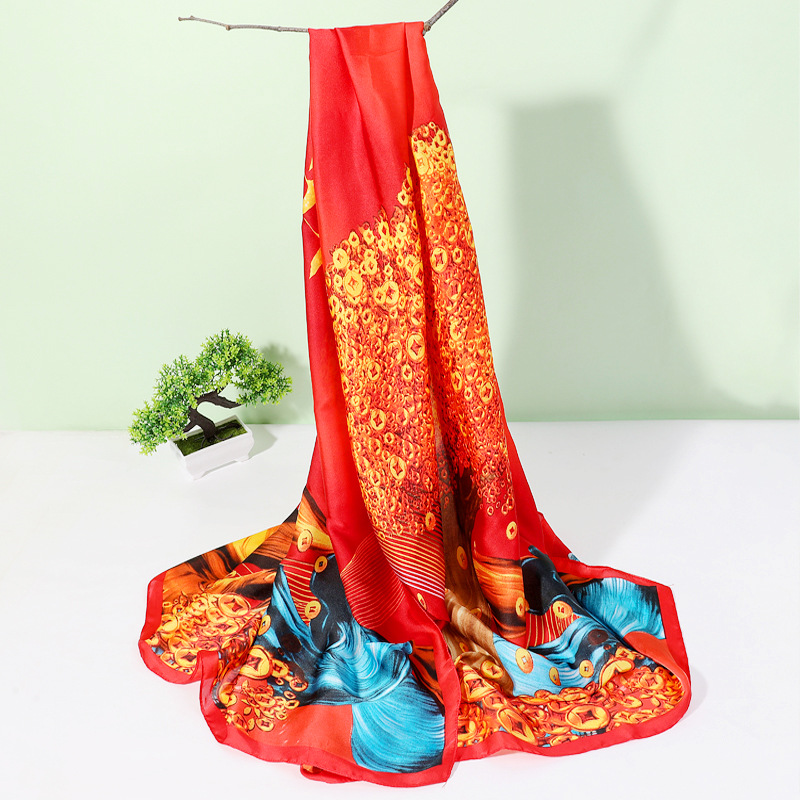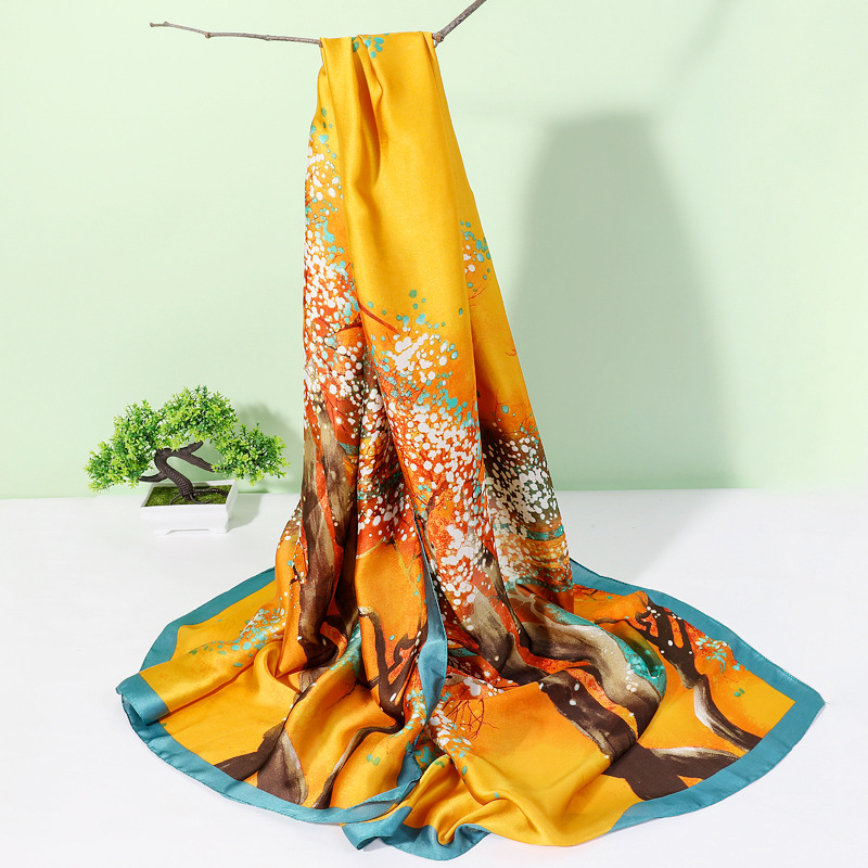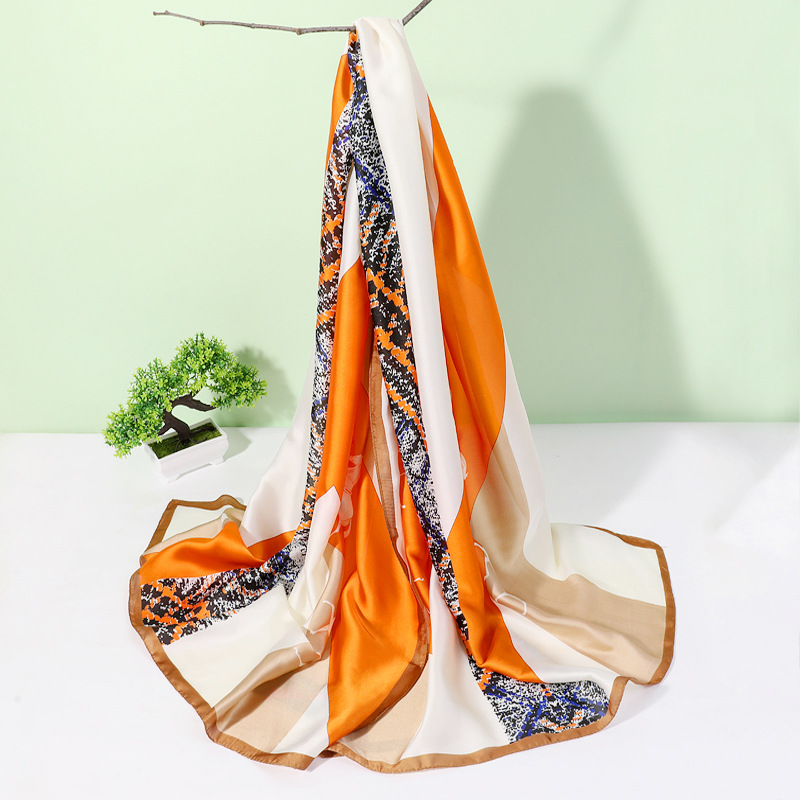 网红爆款春夏丽锦缎长丝巾女轻奢丝绸围巾仿丝防晒披肩沙滩巾披肩