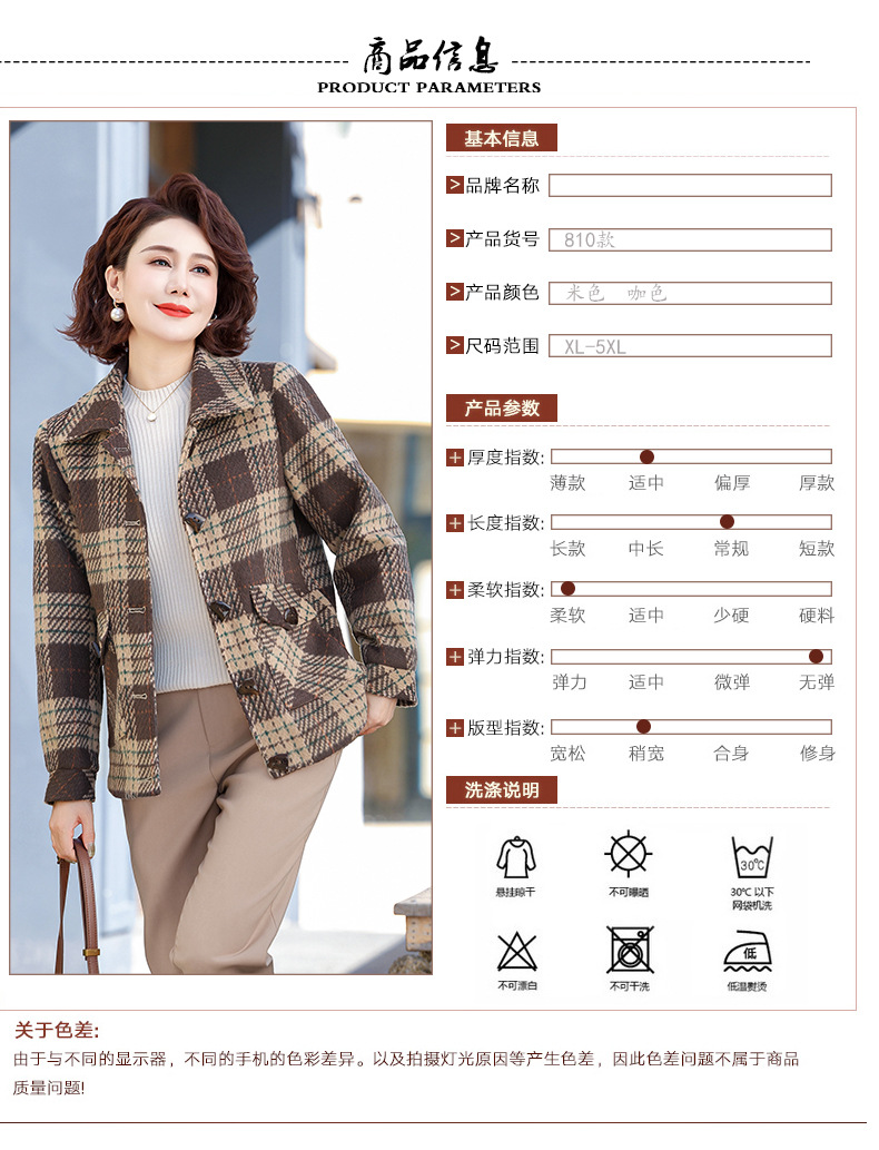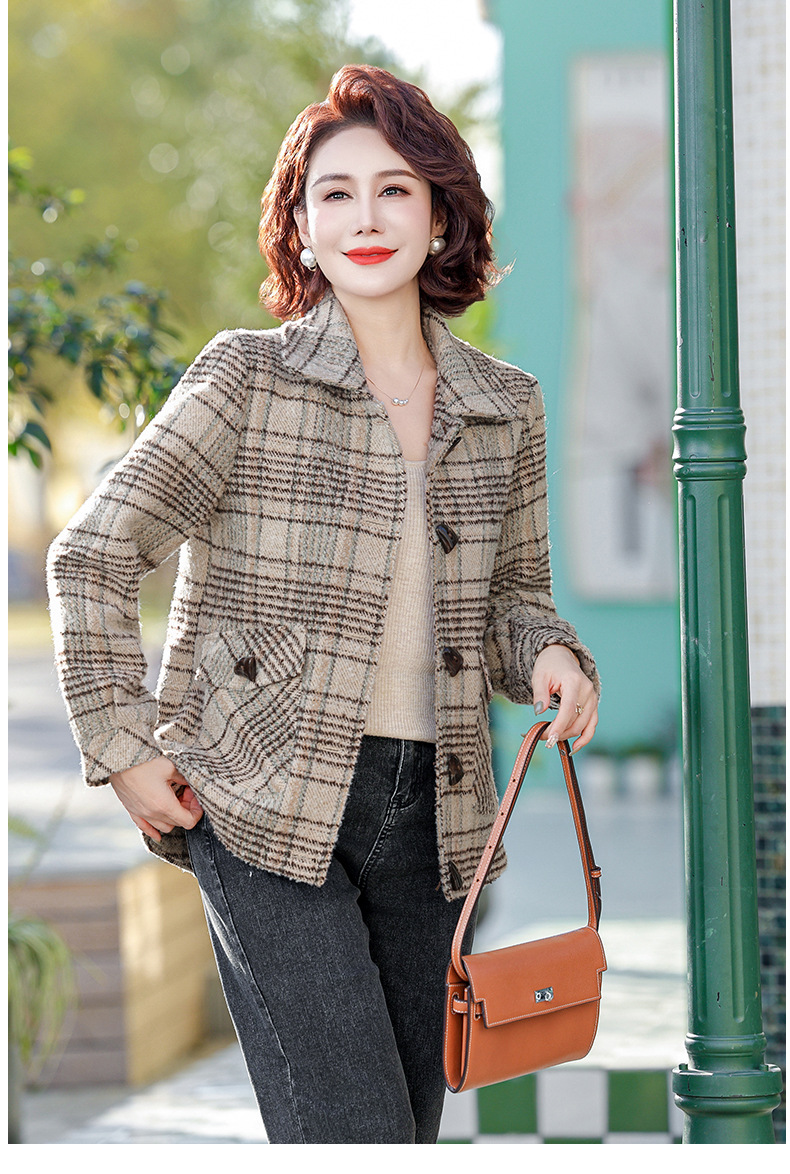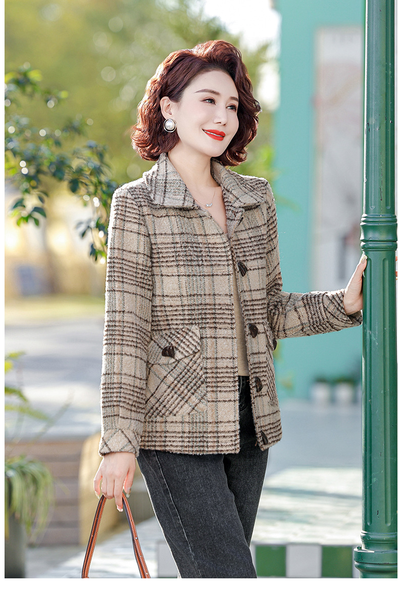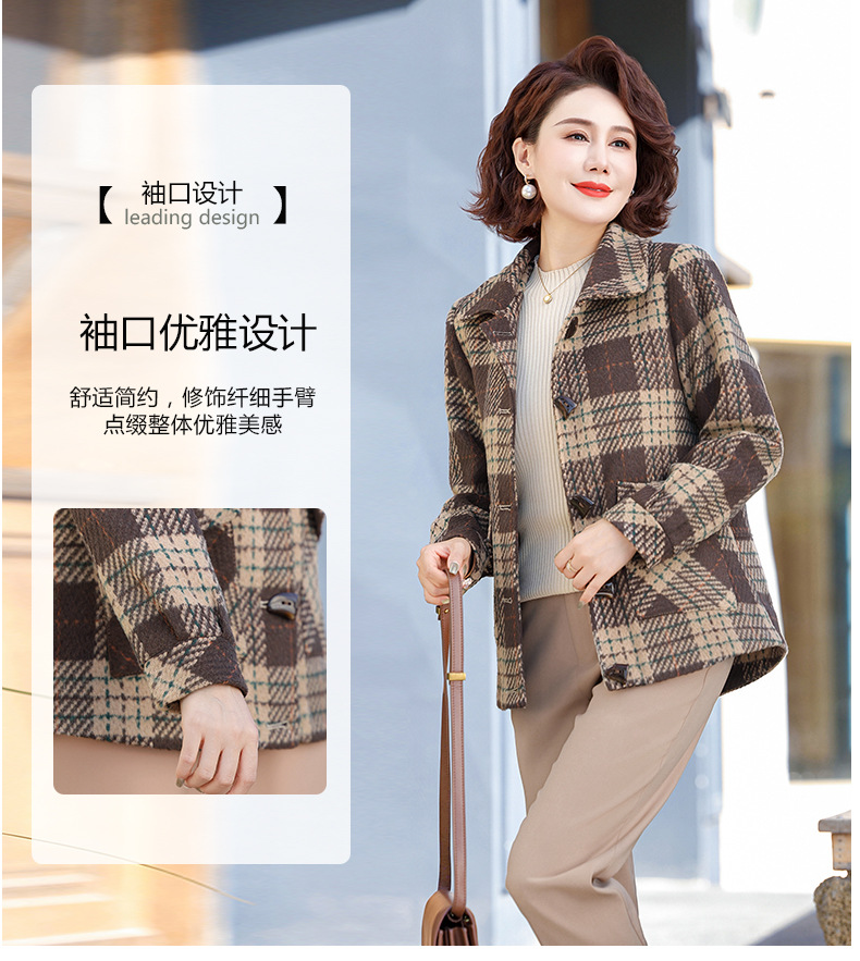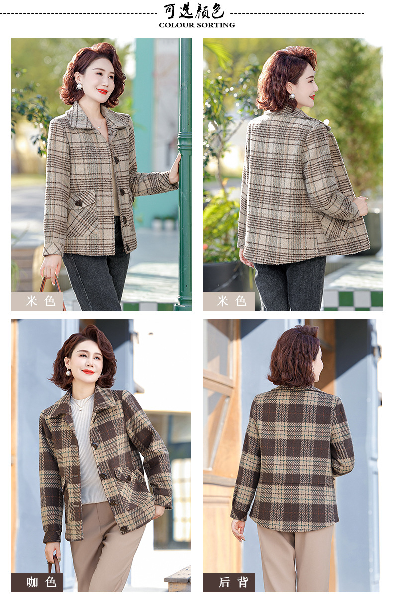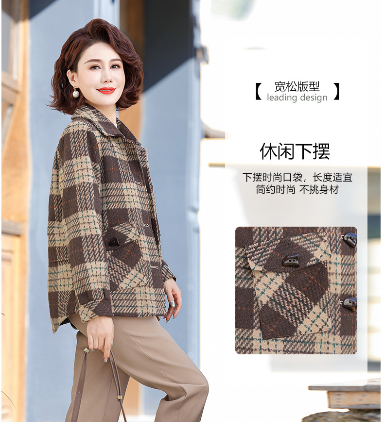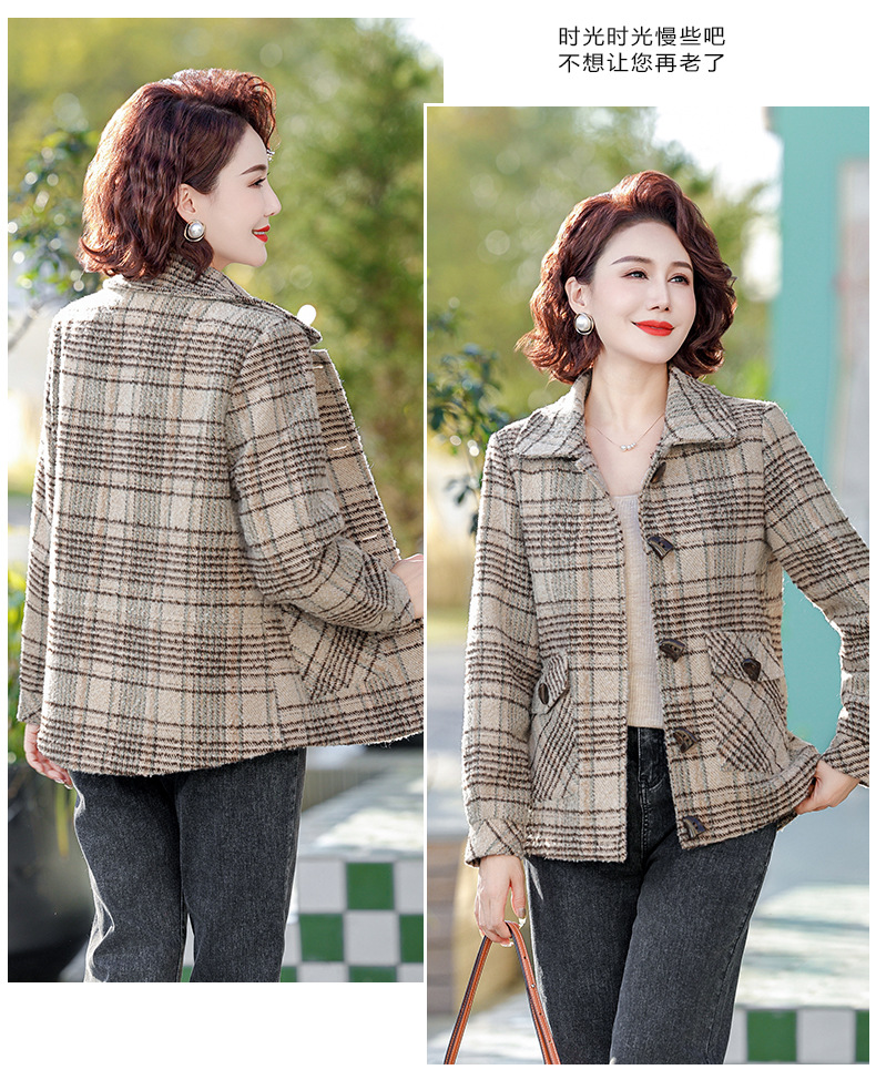 俏雅莹妈妈春秋装外套中老年女装洋气格子上衣中年时尚短款风衣