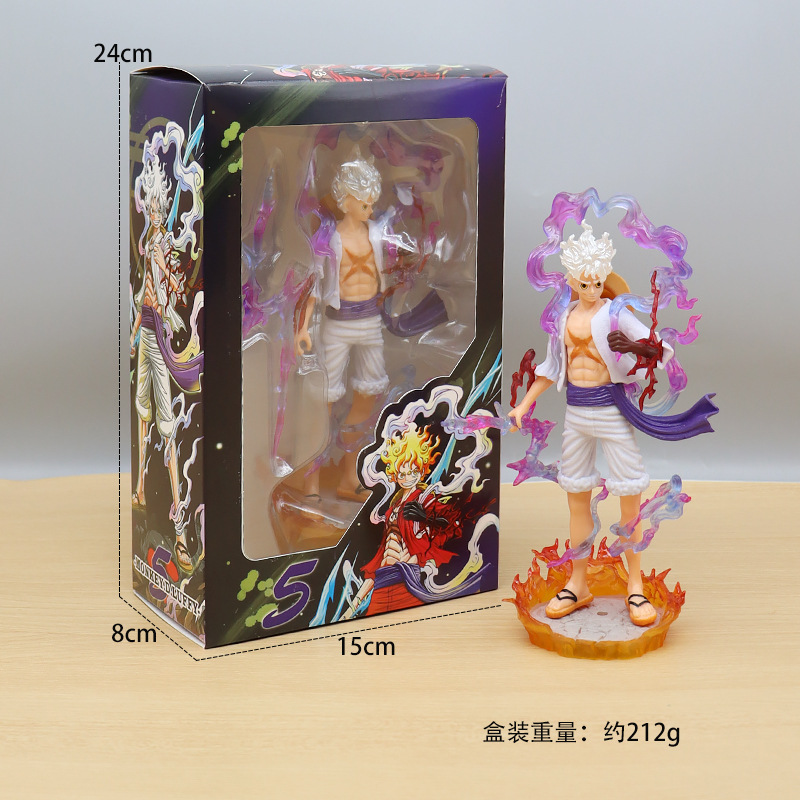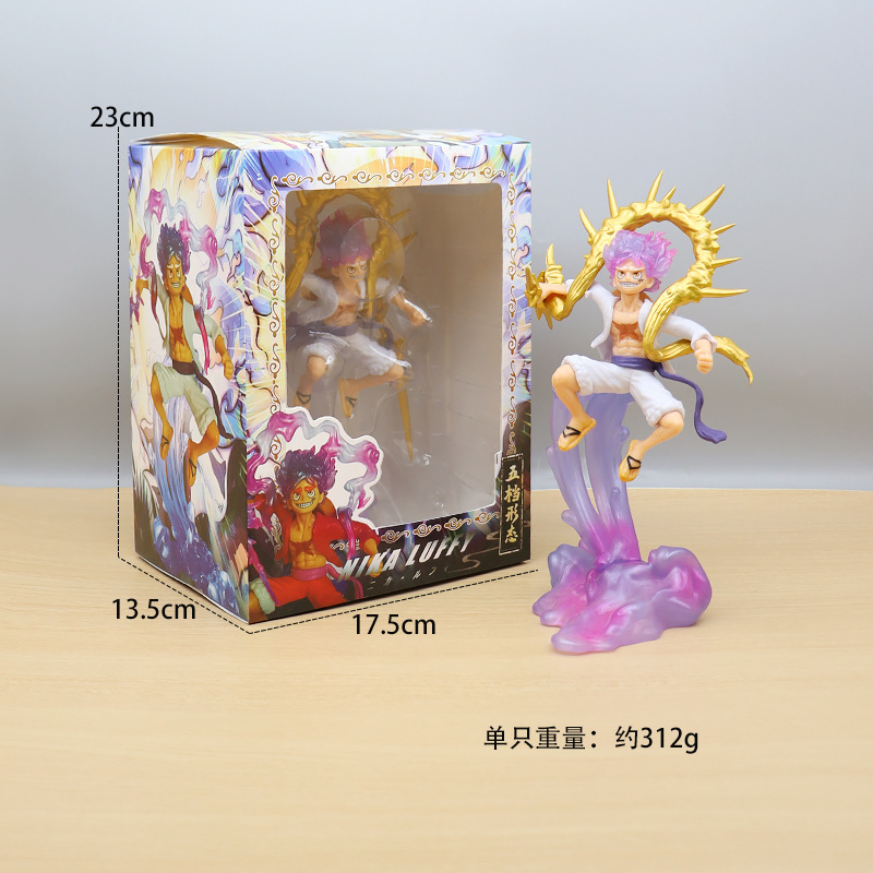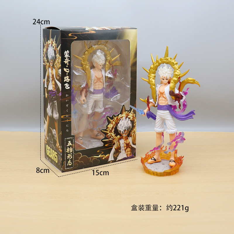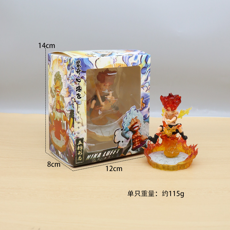 海贼王手办尼卡路飞5档果实觉醒太阳神Q版路飞带底座车载动漫摆件