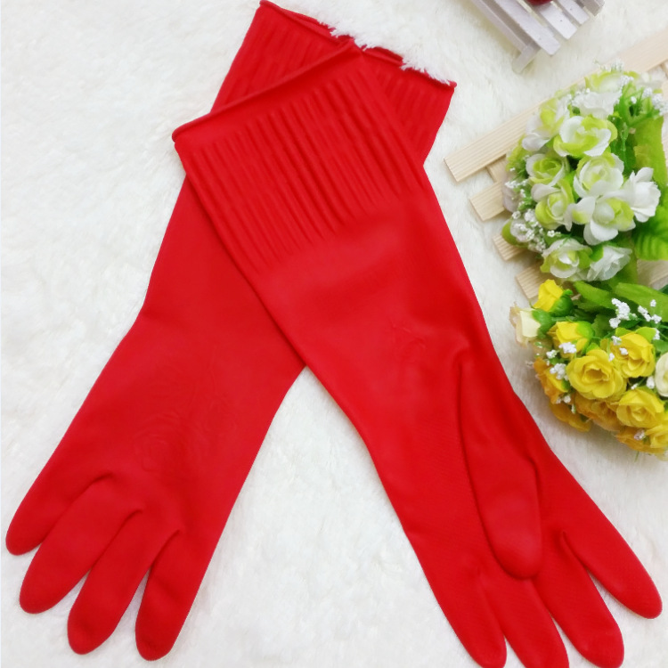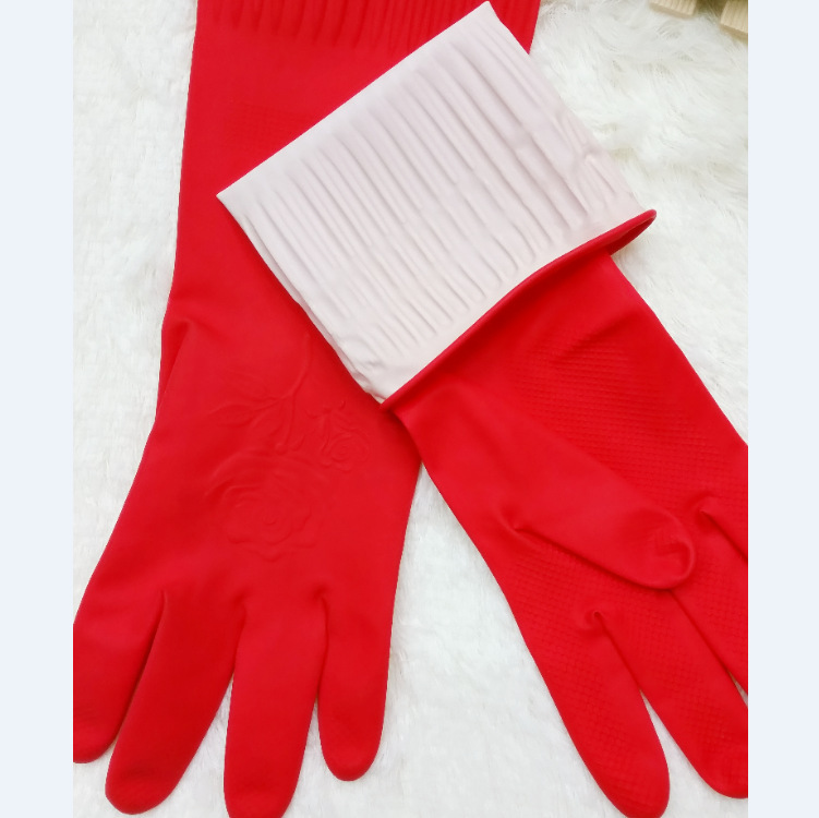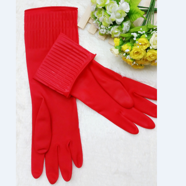 厂家自产自销 金葵花一把抓洗碗清洁洗衣乳胶加长家用手套 80克