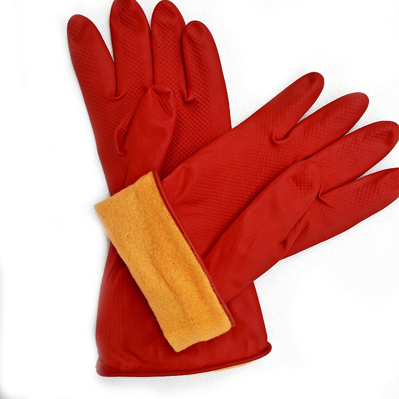 批发乳胶短款加棉家用手套查擦车防护家务清洁厨房防油手套批发