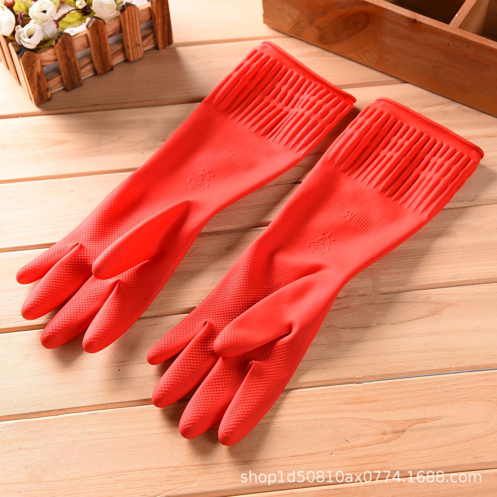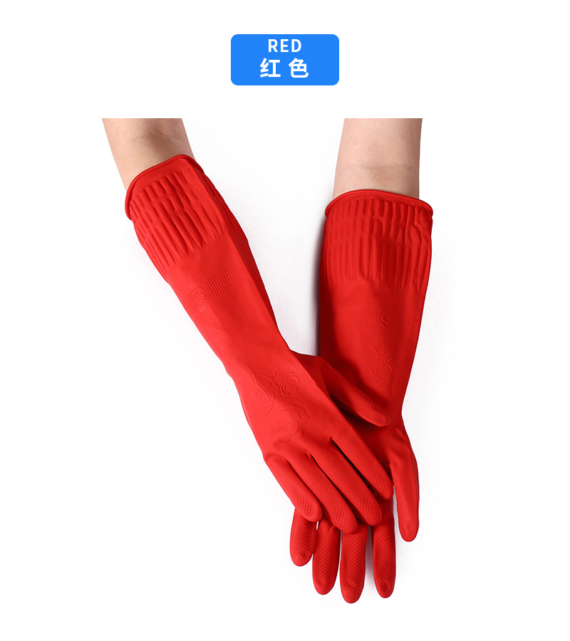 38cm加长厨房用乳胶手套红色洗衣洗碗家务家用手套清洁用具批发