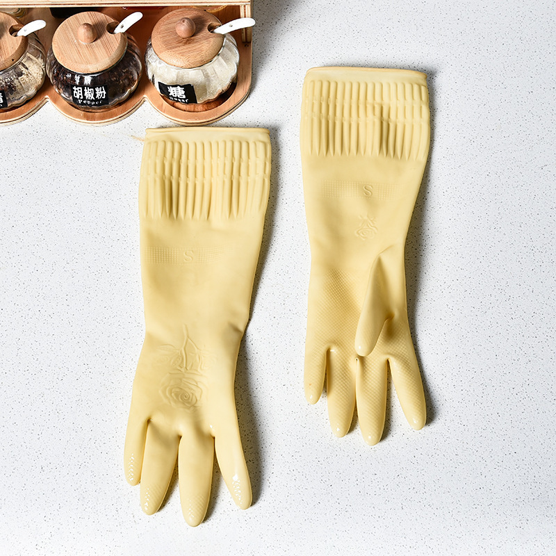 加长乳胶耐酸碱防护工业手套38cm乳白色洗车清洁家用手套 95-100g