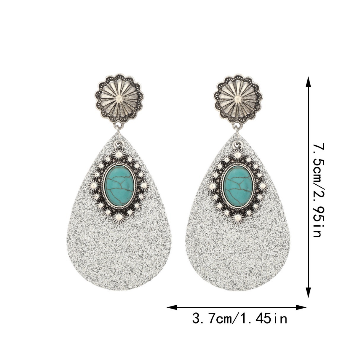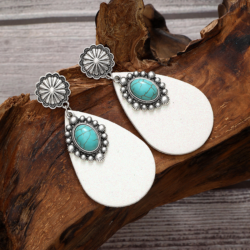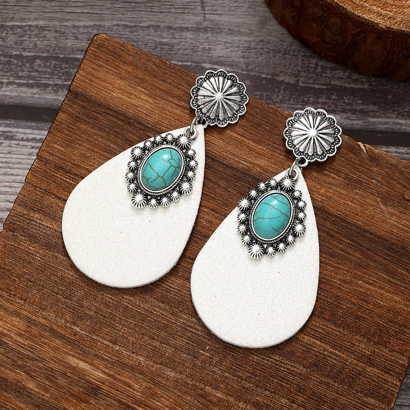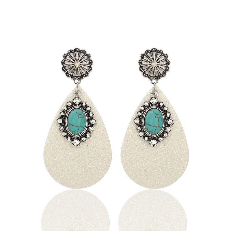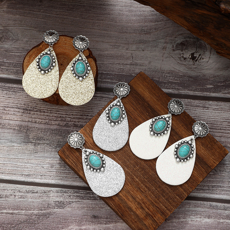 跨境文艺复古西部风亮片皮革耳环蓝宝石吊钻时尚耳环亚马逊速卖通