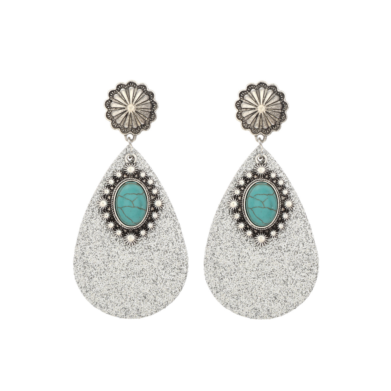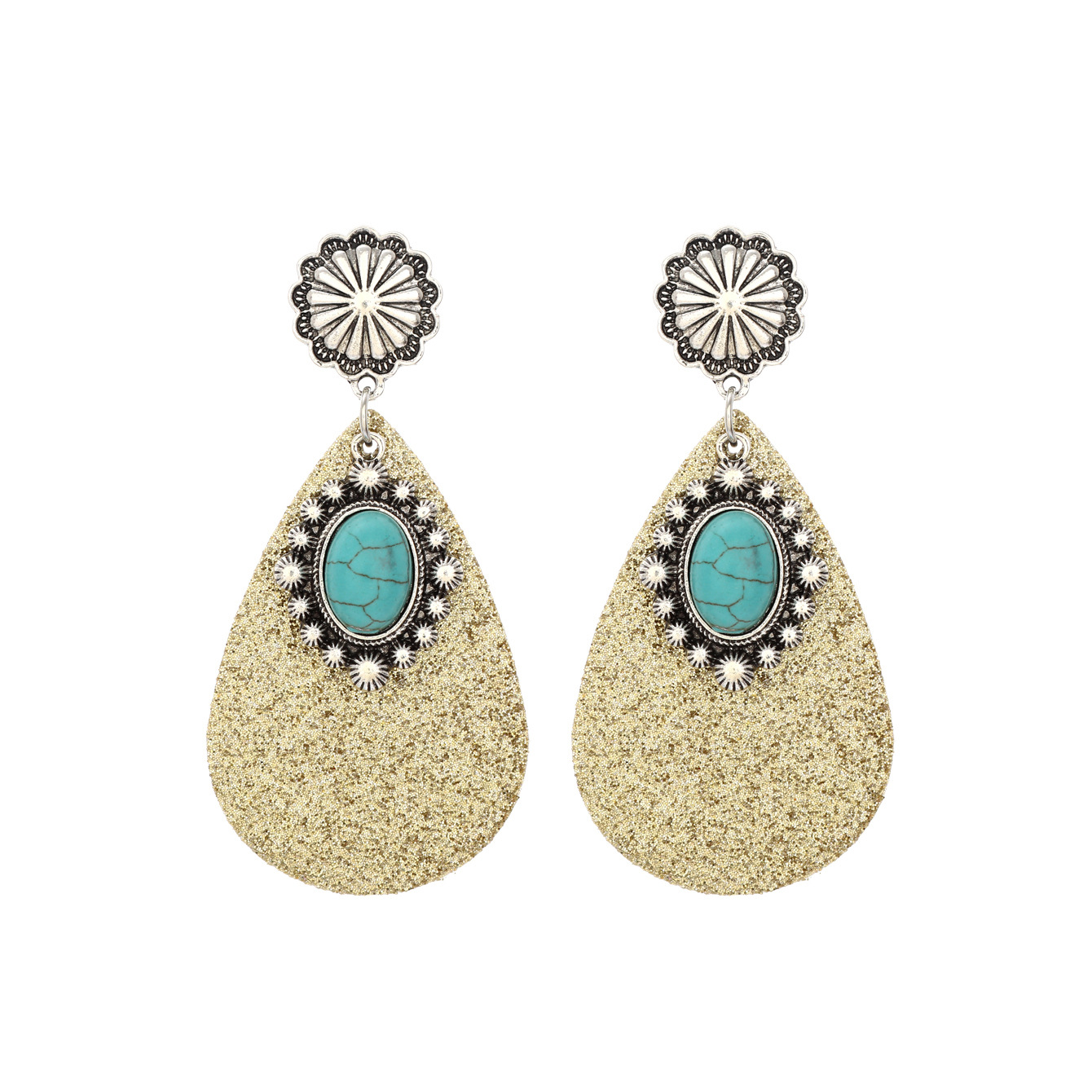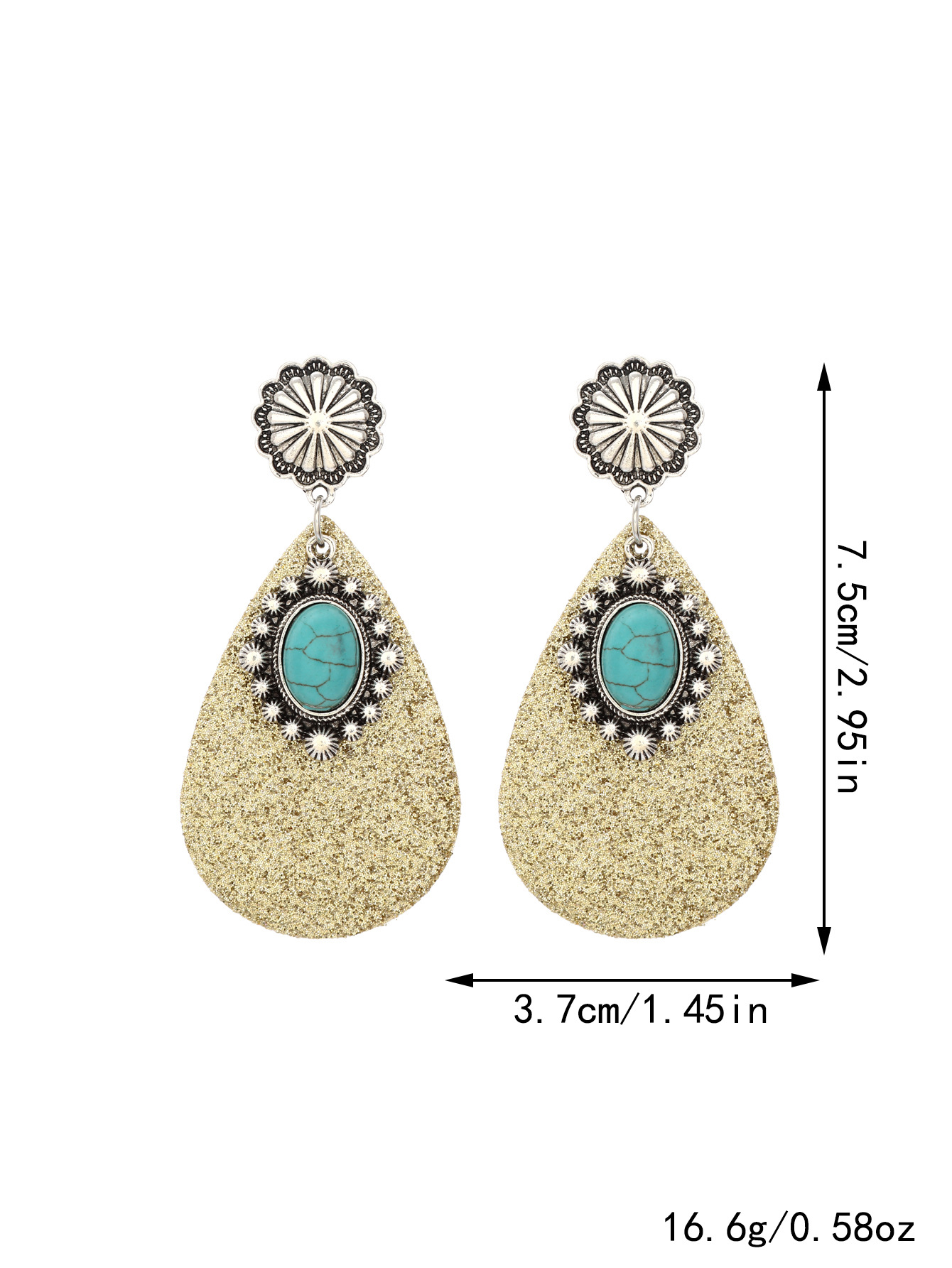 跨境文艺复古西部风亮片皮革耳环蓝宝石吊钻时尚耳环亚马逊速卖通