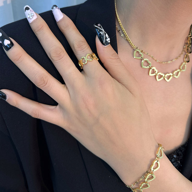 欧美时尚简约女士不锈钢开口戒指 不掉色几何爱心形钛钢戒指批发