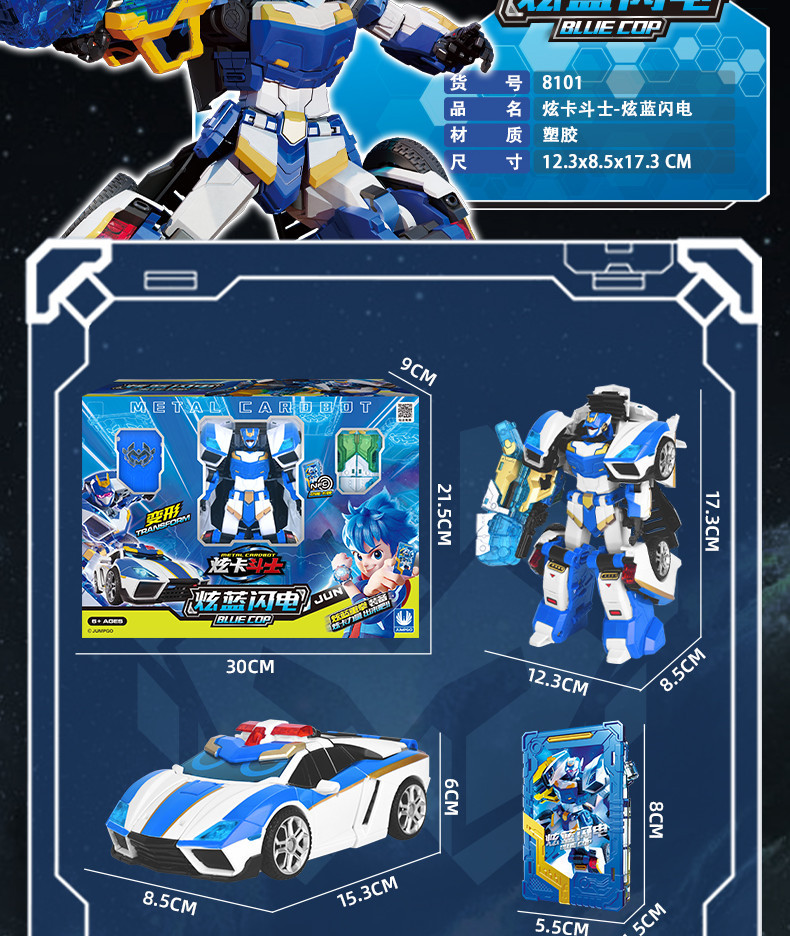 正版炫卡斗士炫蓝闪电变形机器人汽车玩具战士儿童男孩金刚旋
