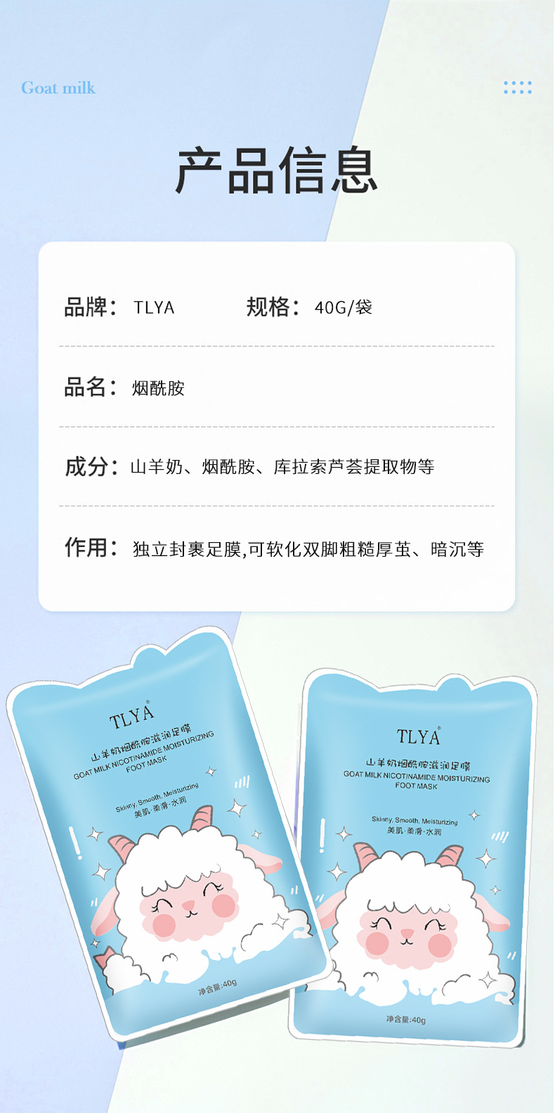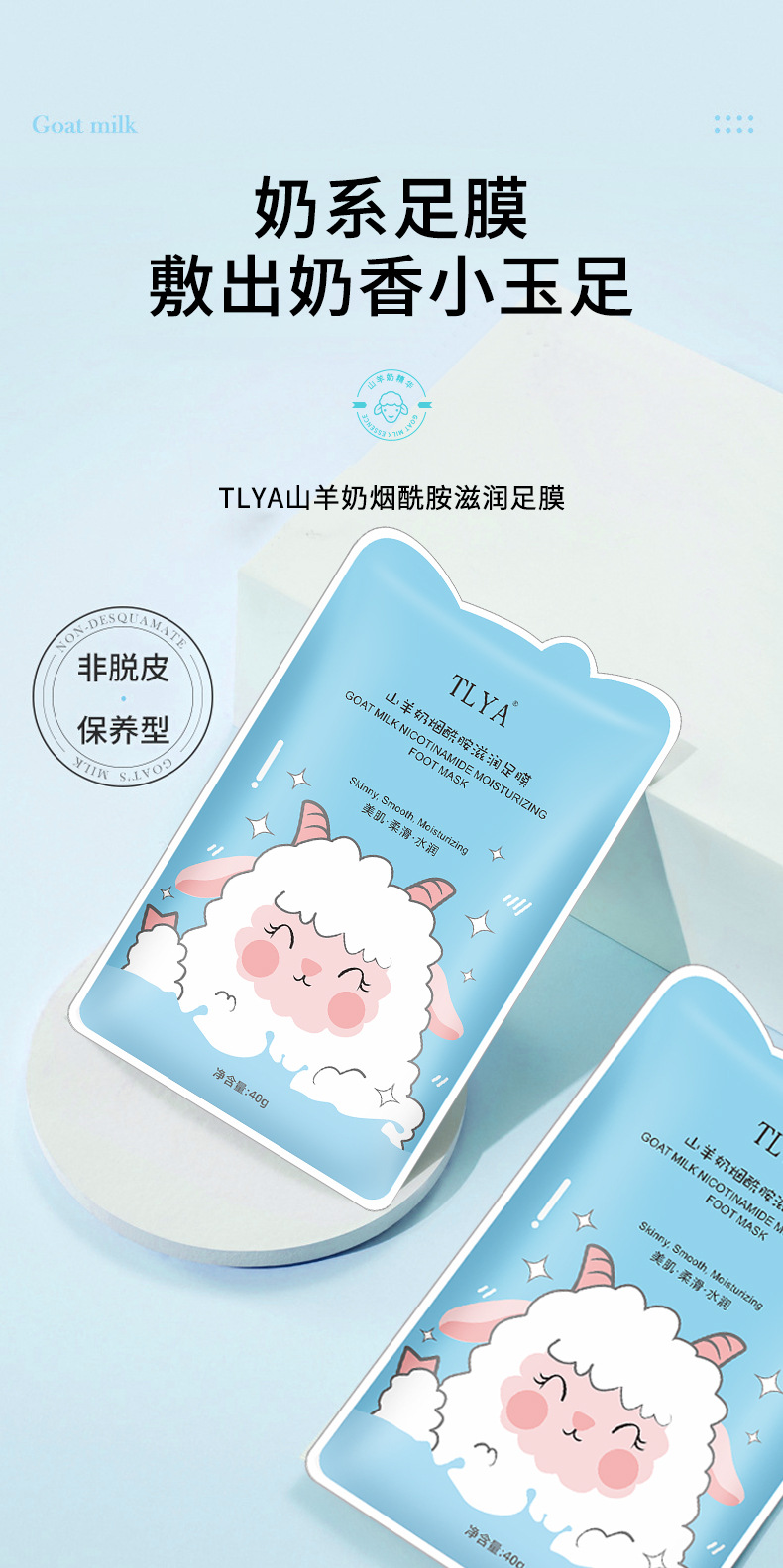TLYA山羊奶烟酰胺滋润足膜嫩白保湿补水脚后跟防干裂脚套脚膜
