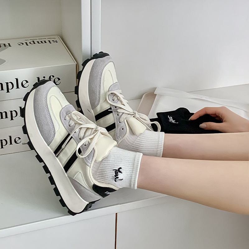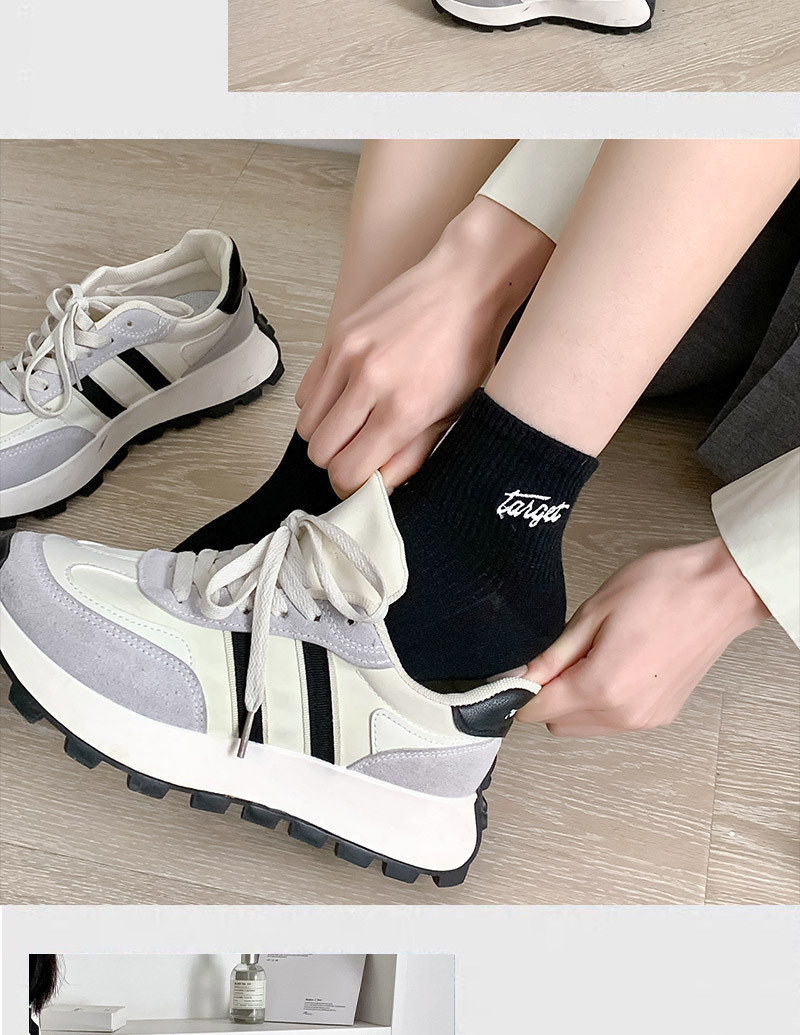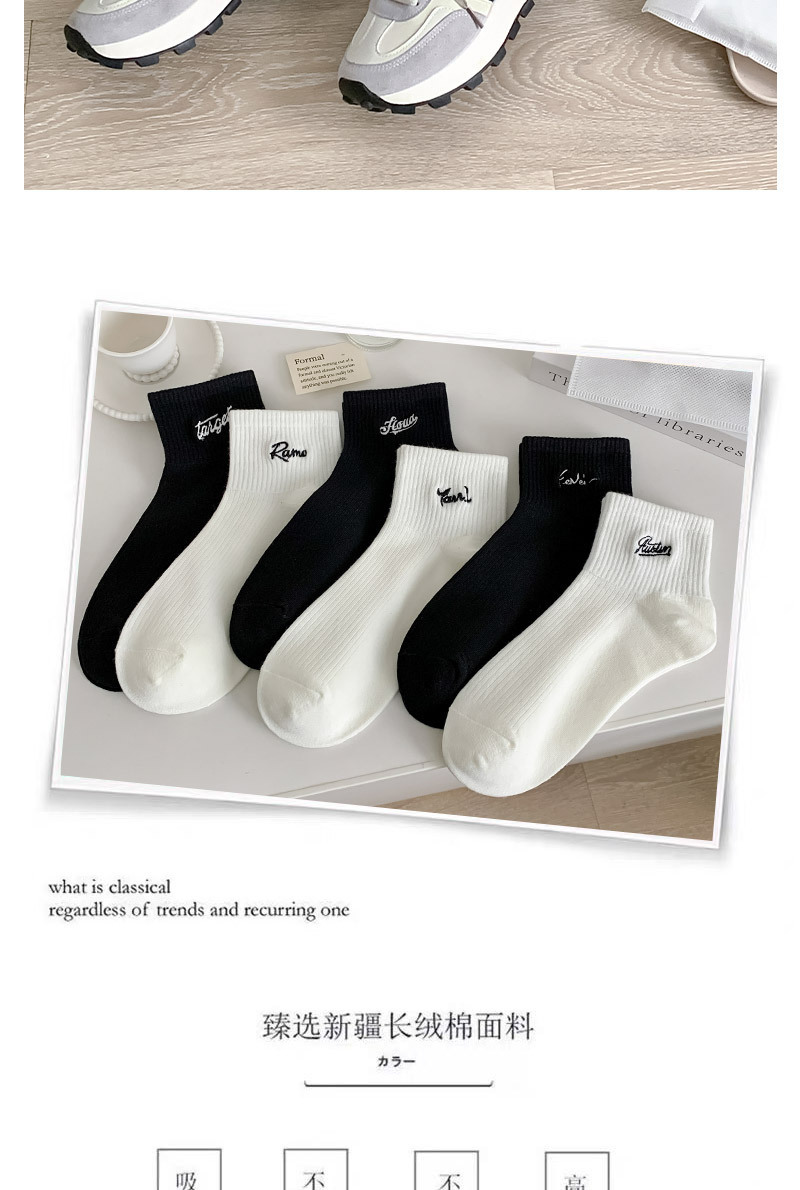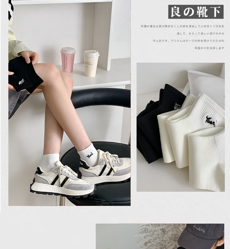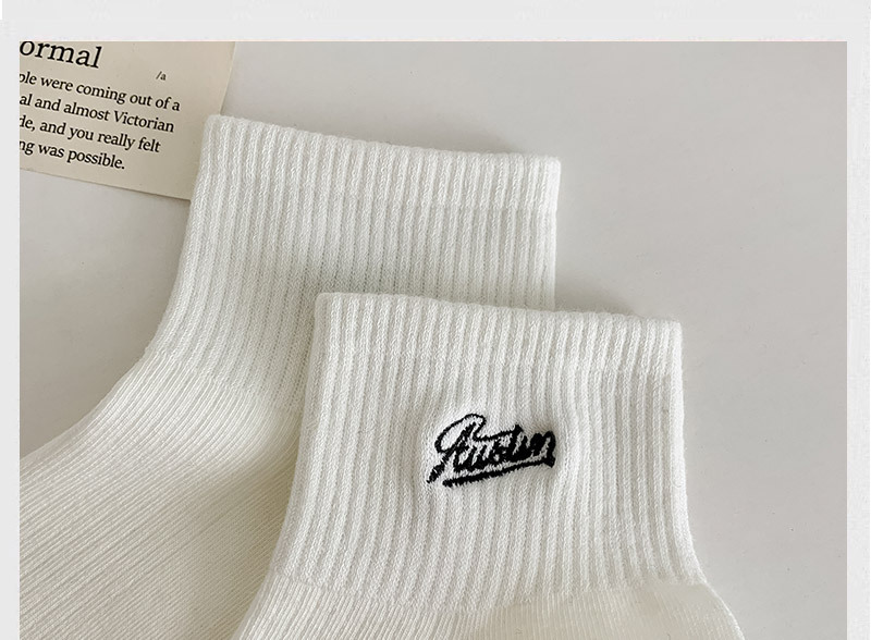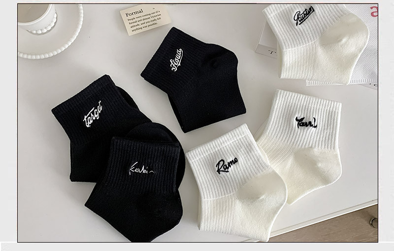 黑白色袜子女短袜ins潮春天夏季薄款纯色棉袜日系刺绣中筒袜批发