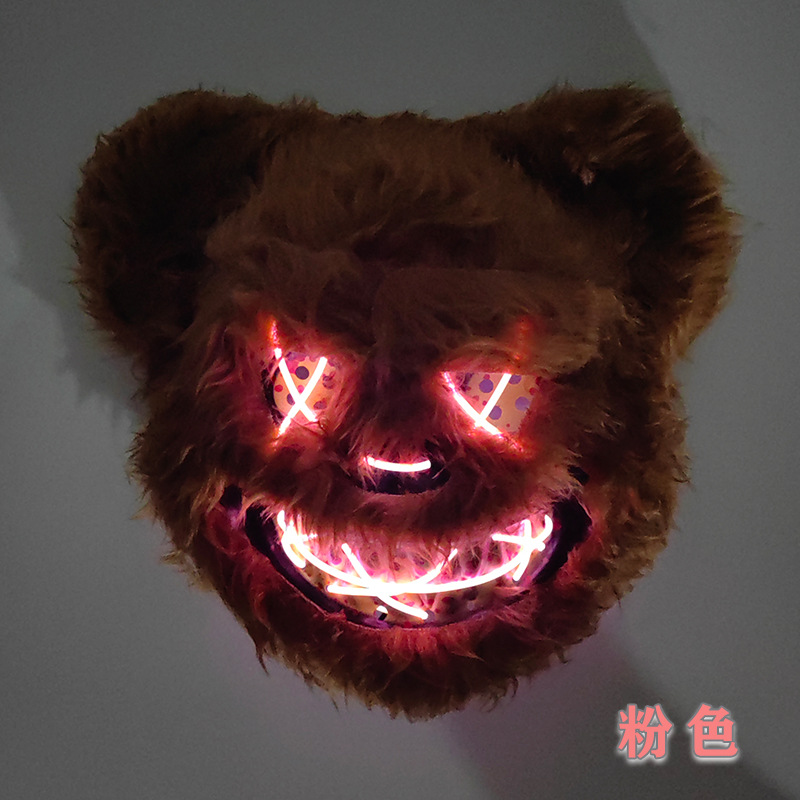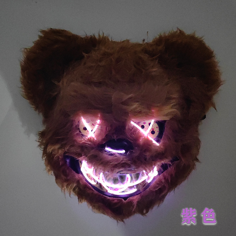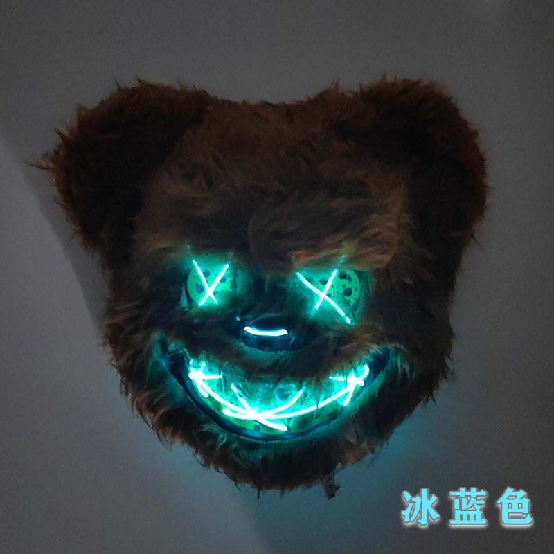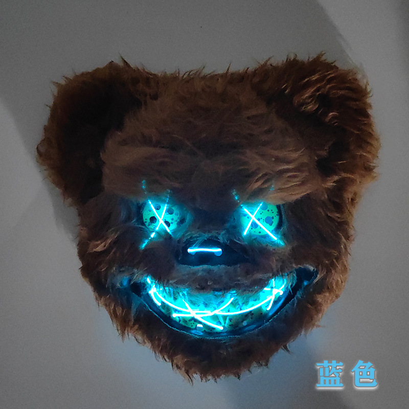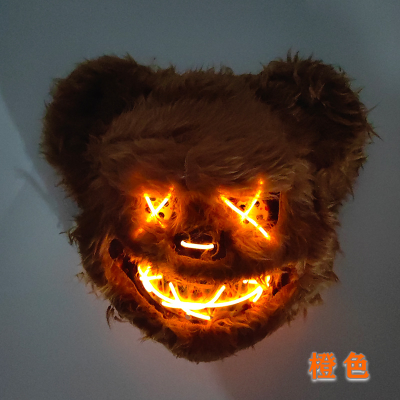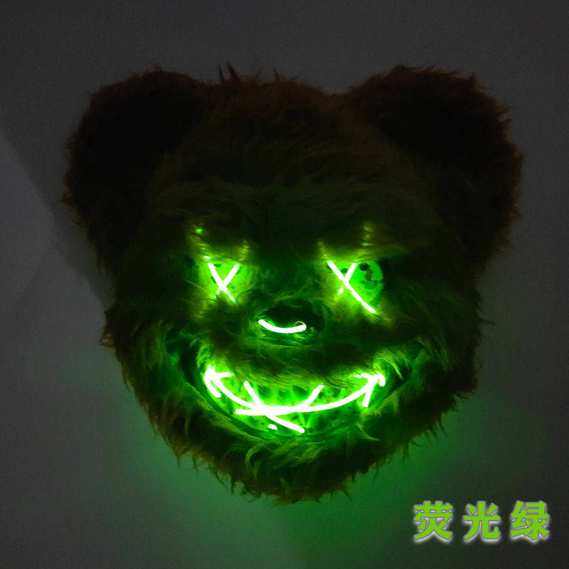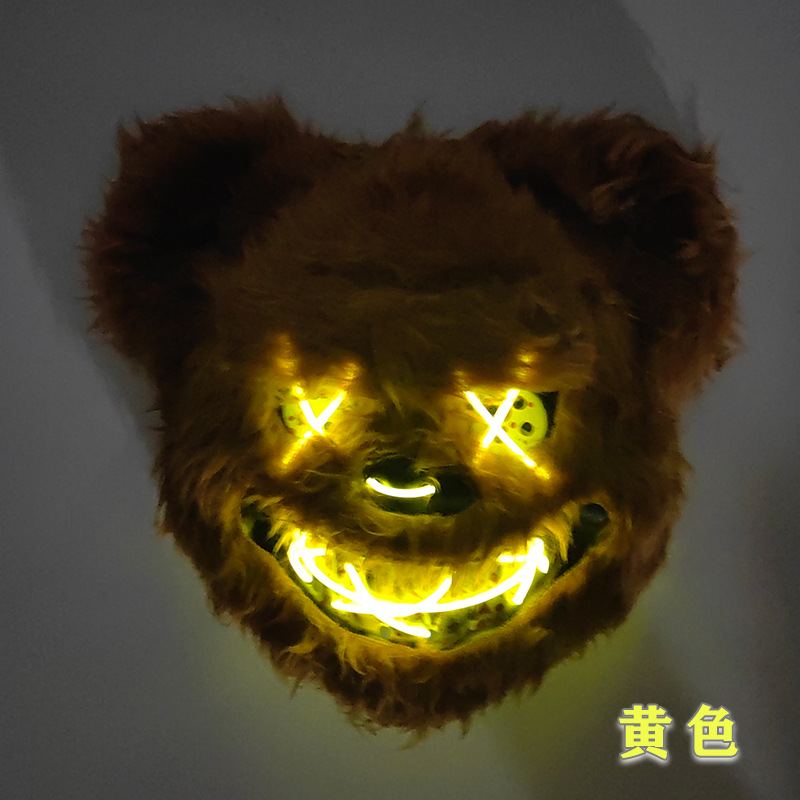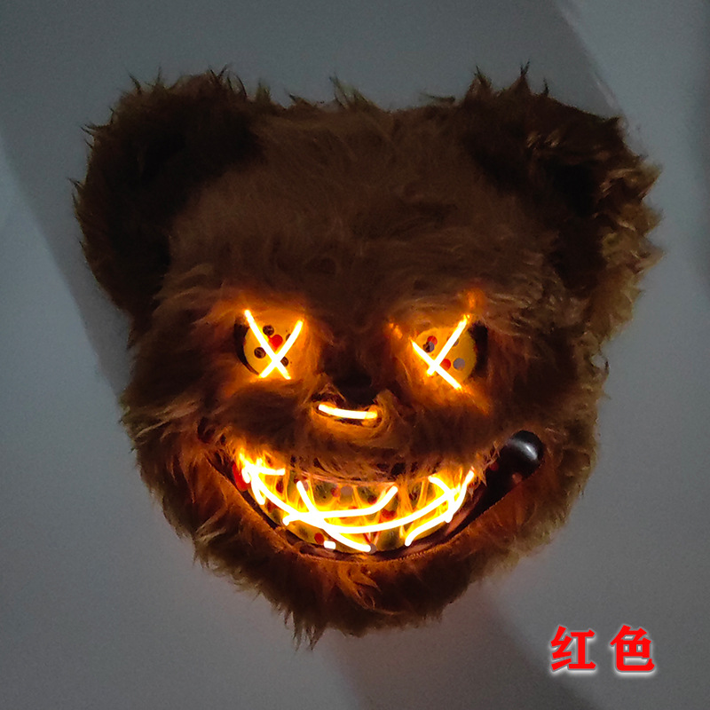 万圣节恐怖面具发光毛绒熊恐怖装扮道具万圣发光面具塑料恐怖装扮