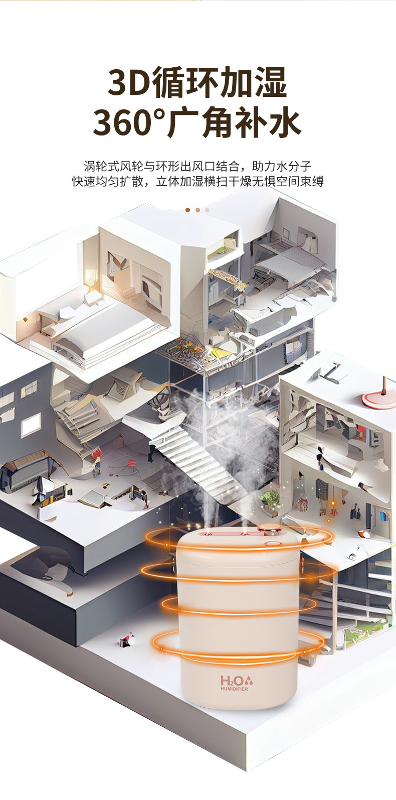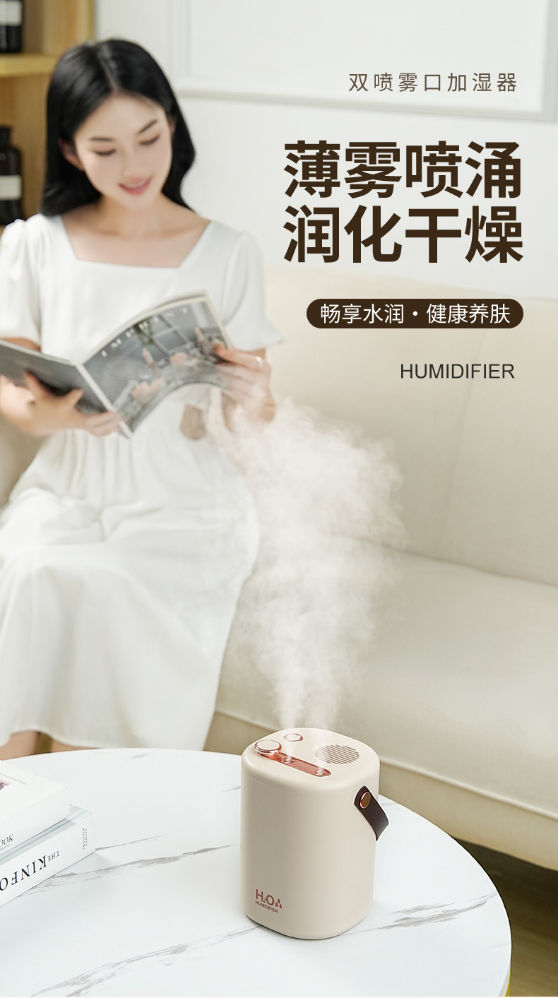 外贸专供2L双喷加湿器 USB大容量空气加湿器夜灯加湿器