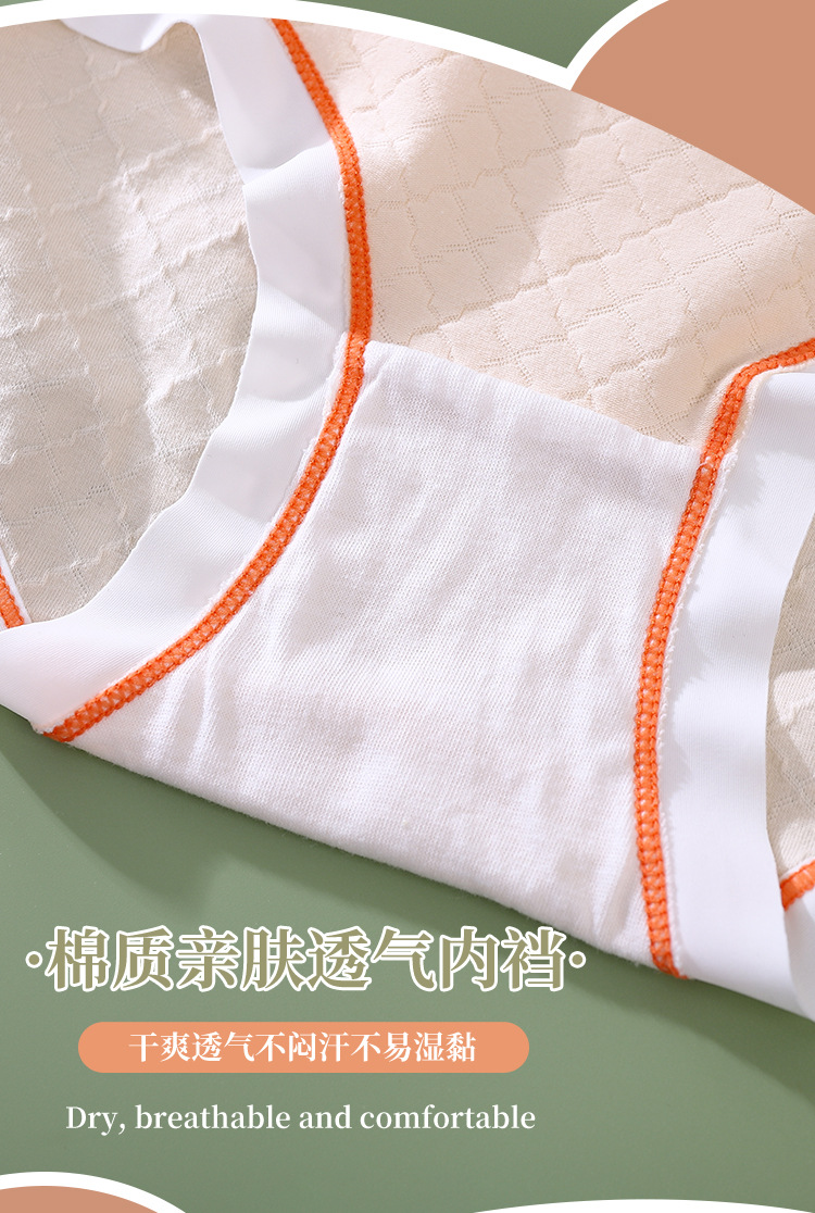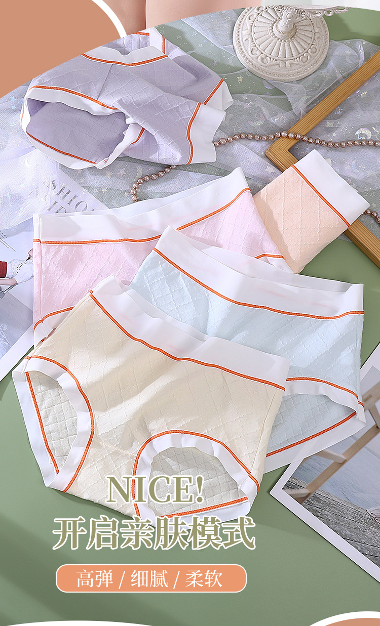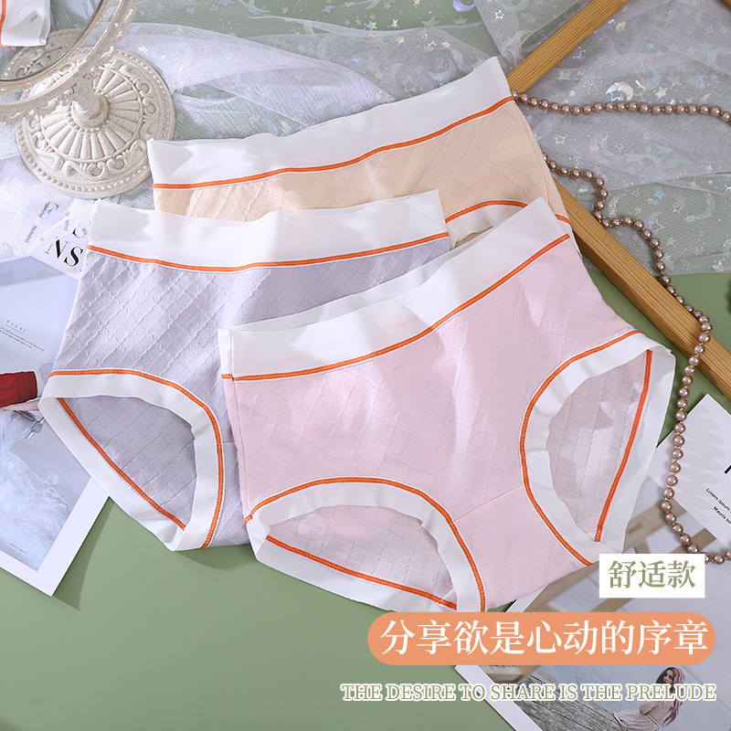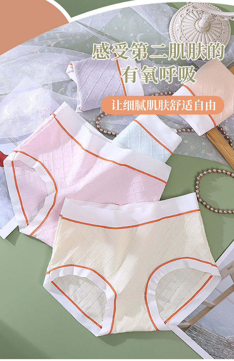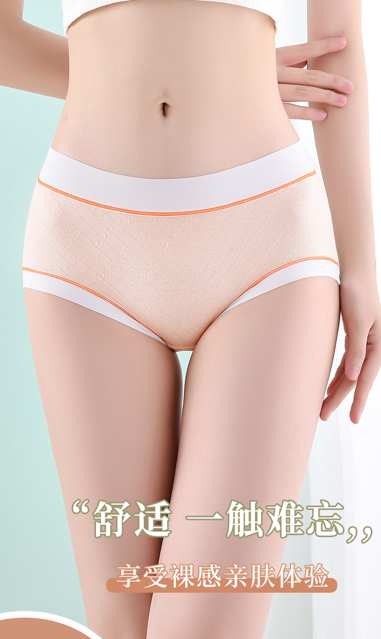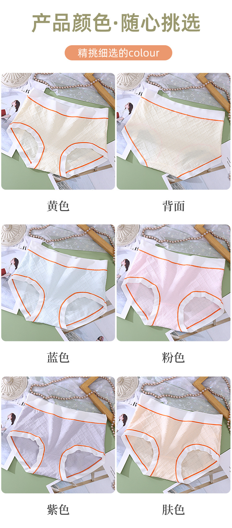 一片式撞色无痕女士甜美中腰大码透气纯棉裆收腹提臀三角裤内裤女