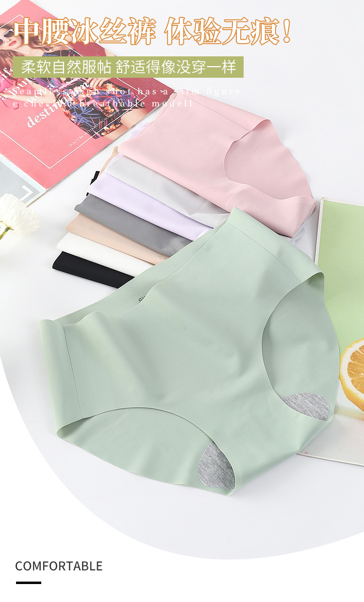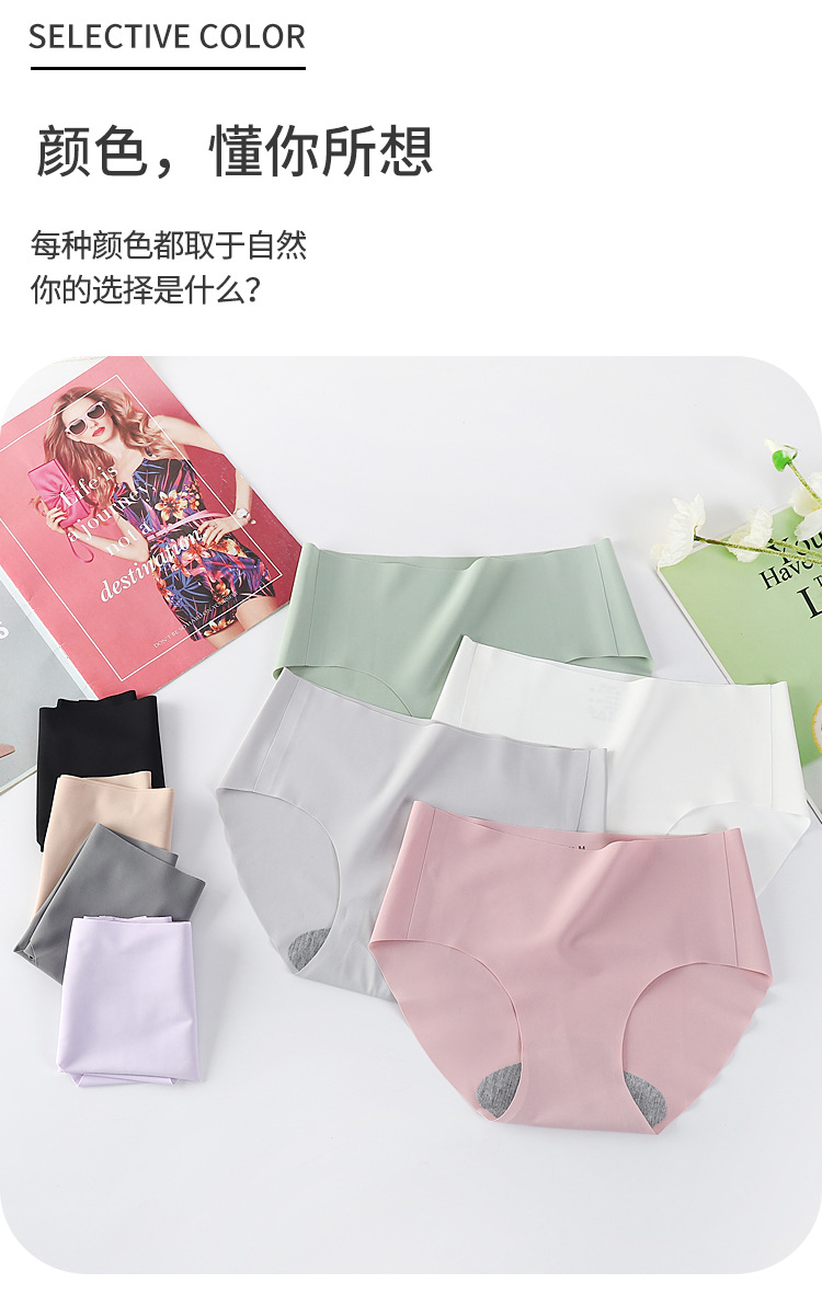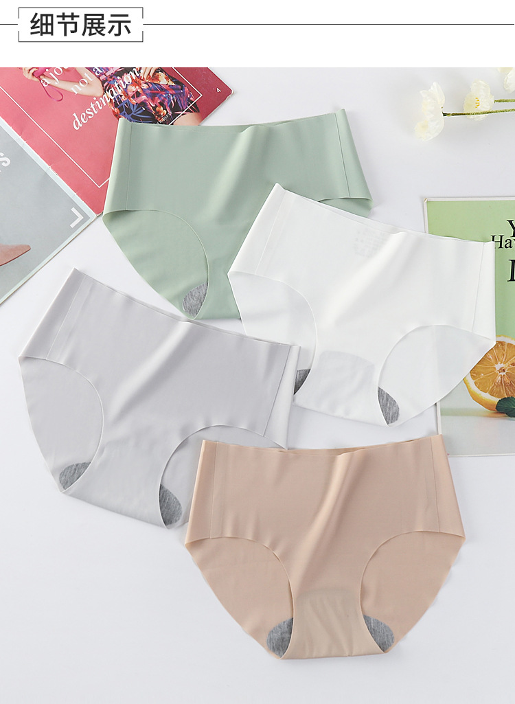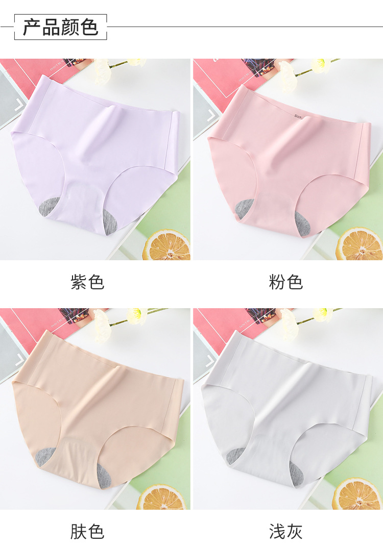 【独立包】安心尚品无痕一片式冰丝中腰纯色女士三角裤内裤女批发