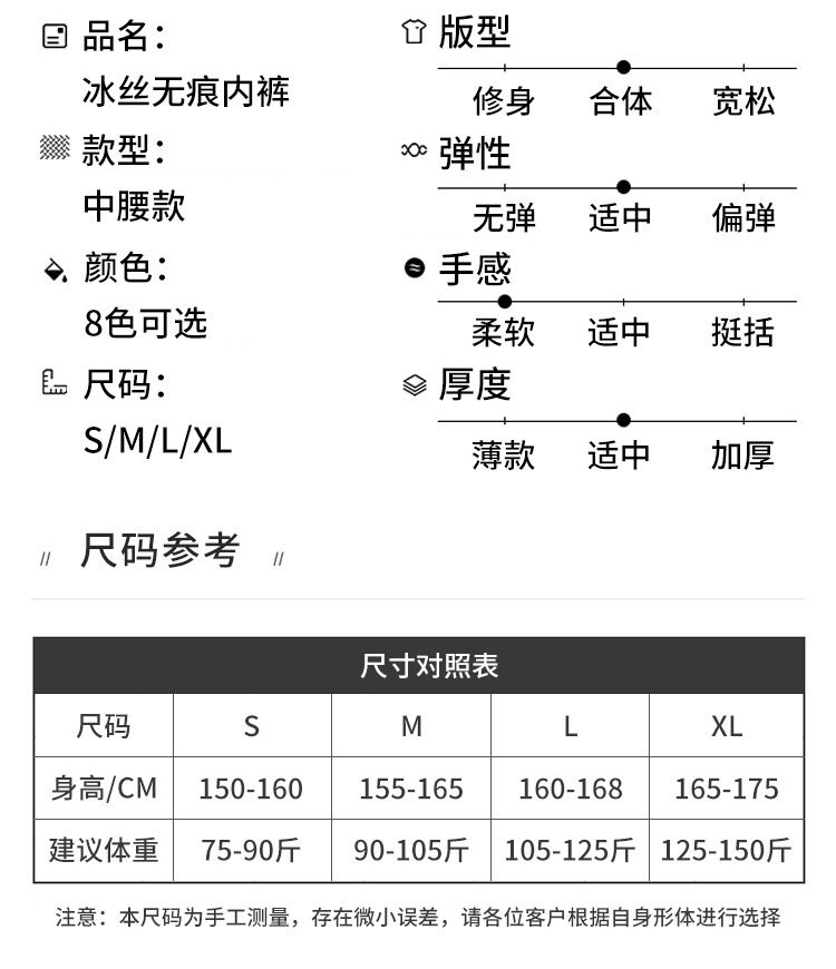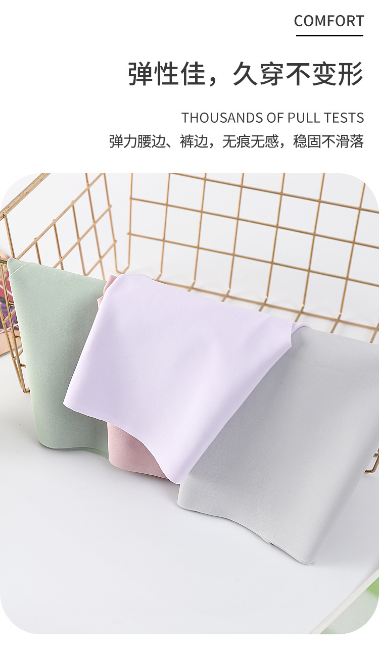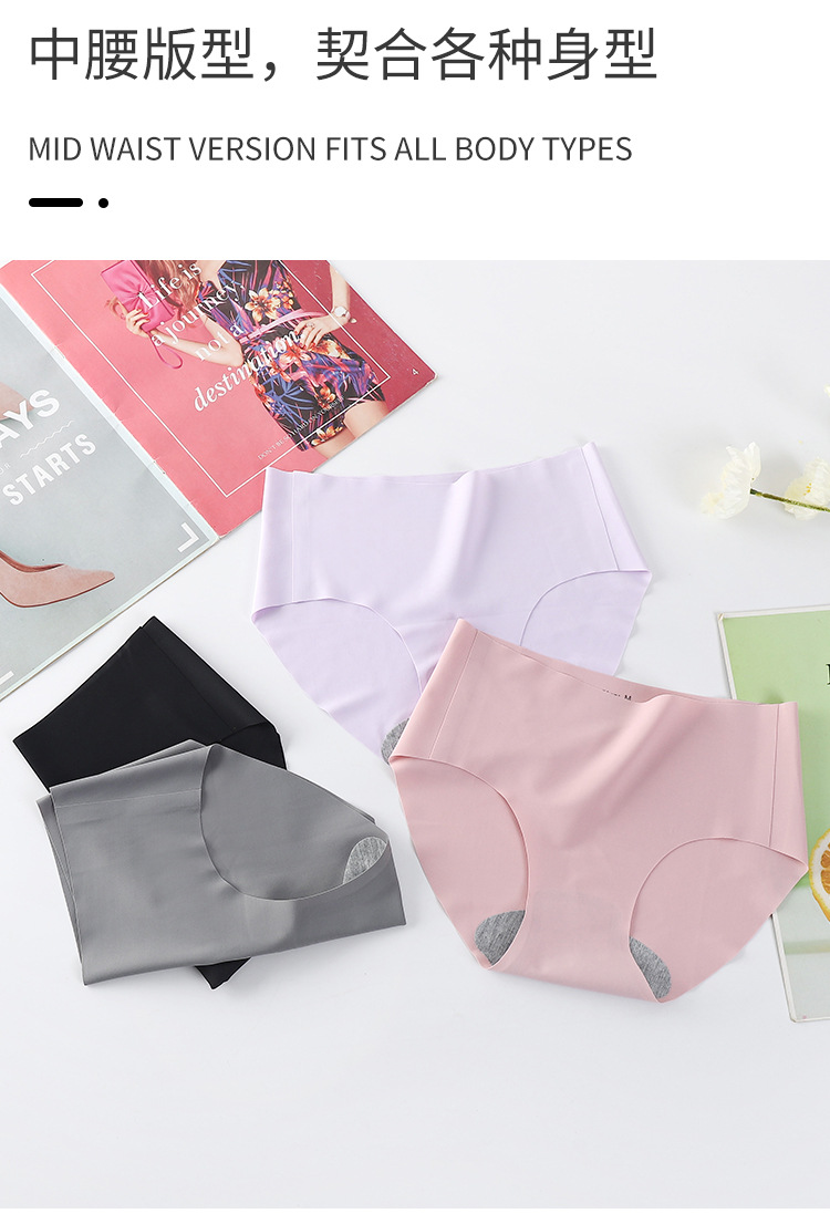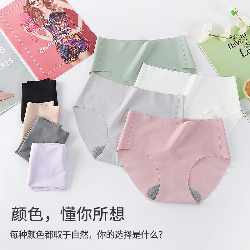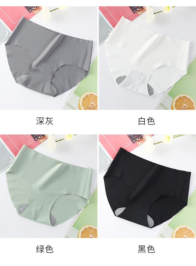 【独立包】安心尚品无痕一片式冰丝中腰纯色女士三角裤内裤女批发