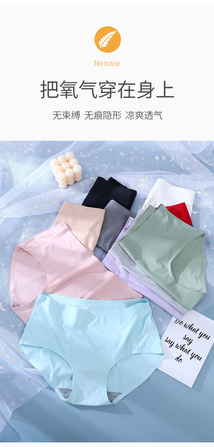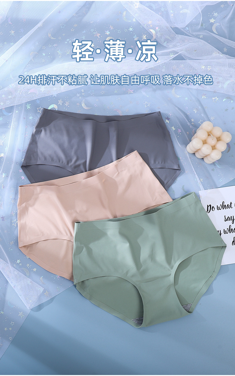 爆款一片式无痕冰丝女士中腰大码纯色亲肤透气性感三角内裤女810