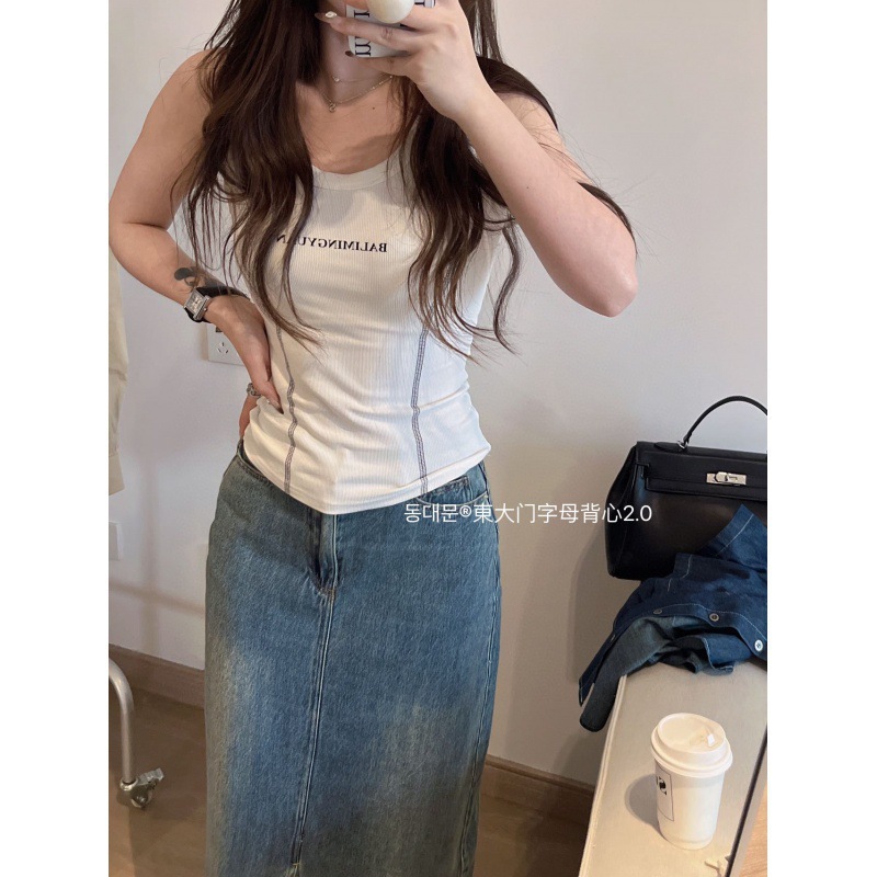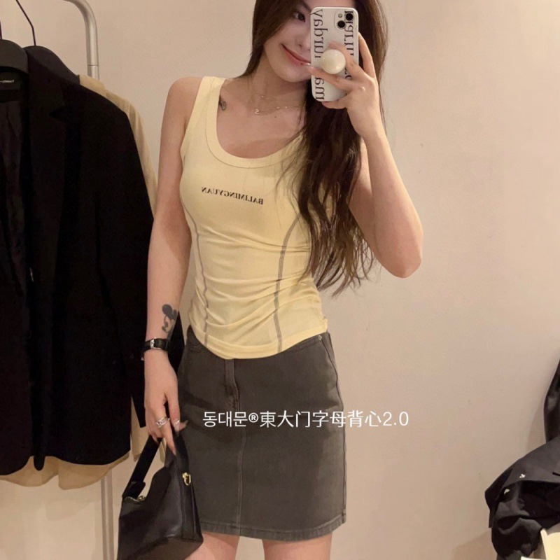东大门字母背心2.0夏季新款修身显瘦遮副乳高弹内搭外穿无袖上衣