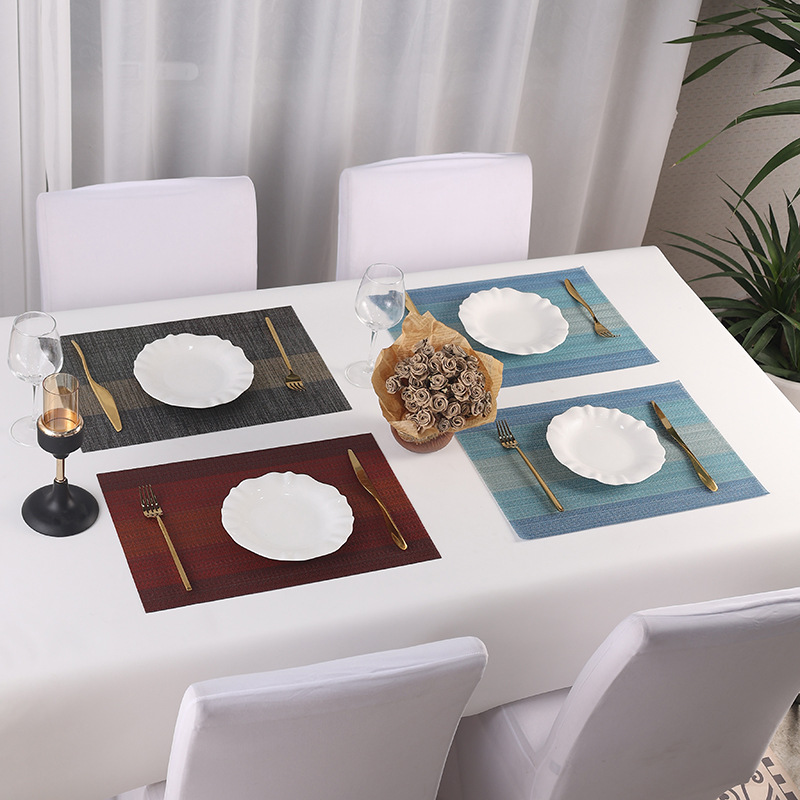 平织条纹PVC高级感现代简约轻盈家用防水防烫耐高温西式餐桌垫批