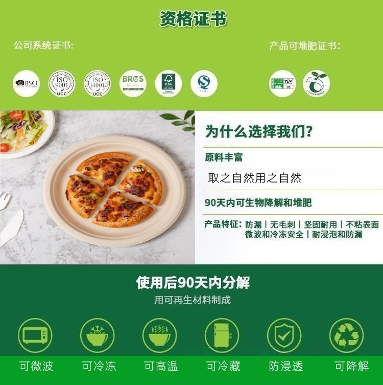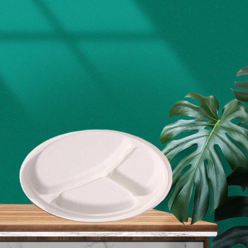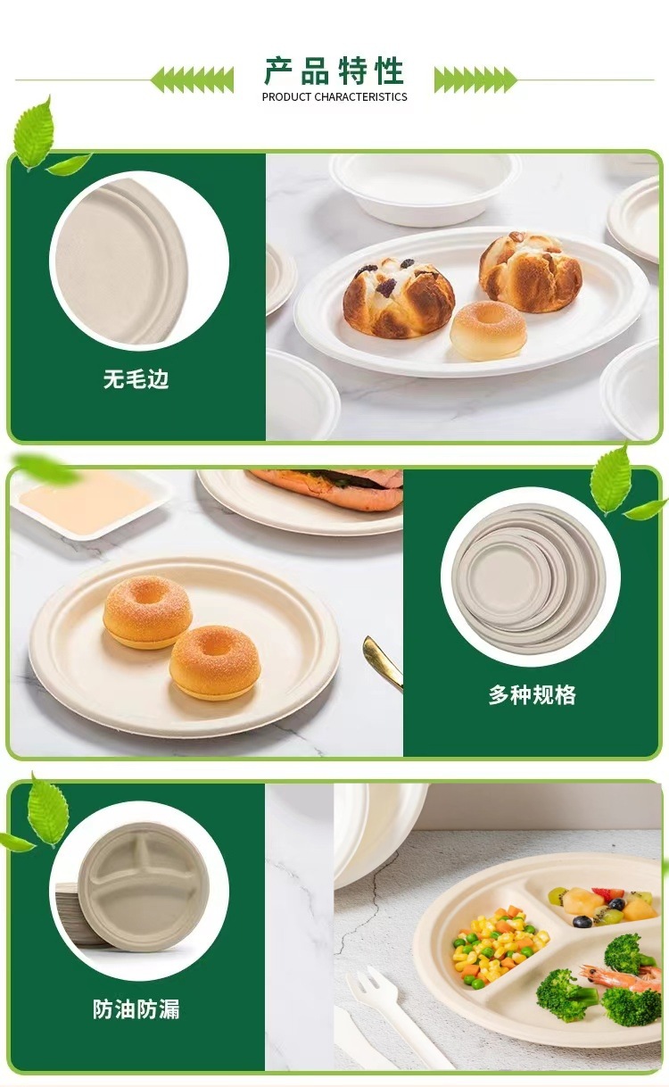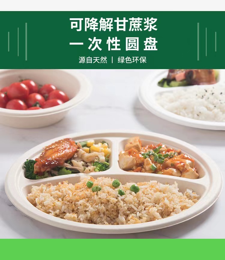 ANXIN甘蔗浆环保一次性餐盘可降解可堆肥分三格一次性餐盘